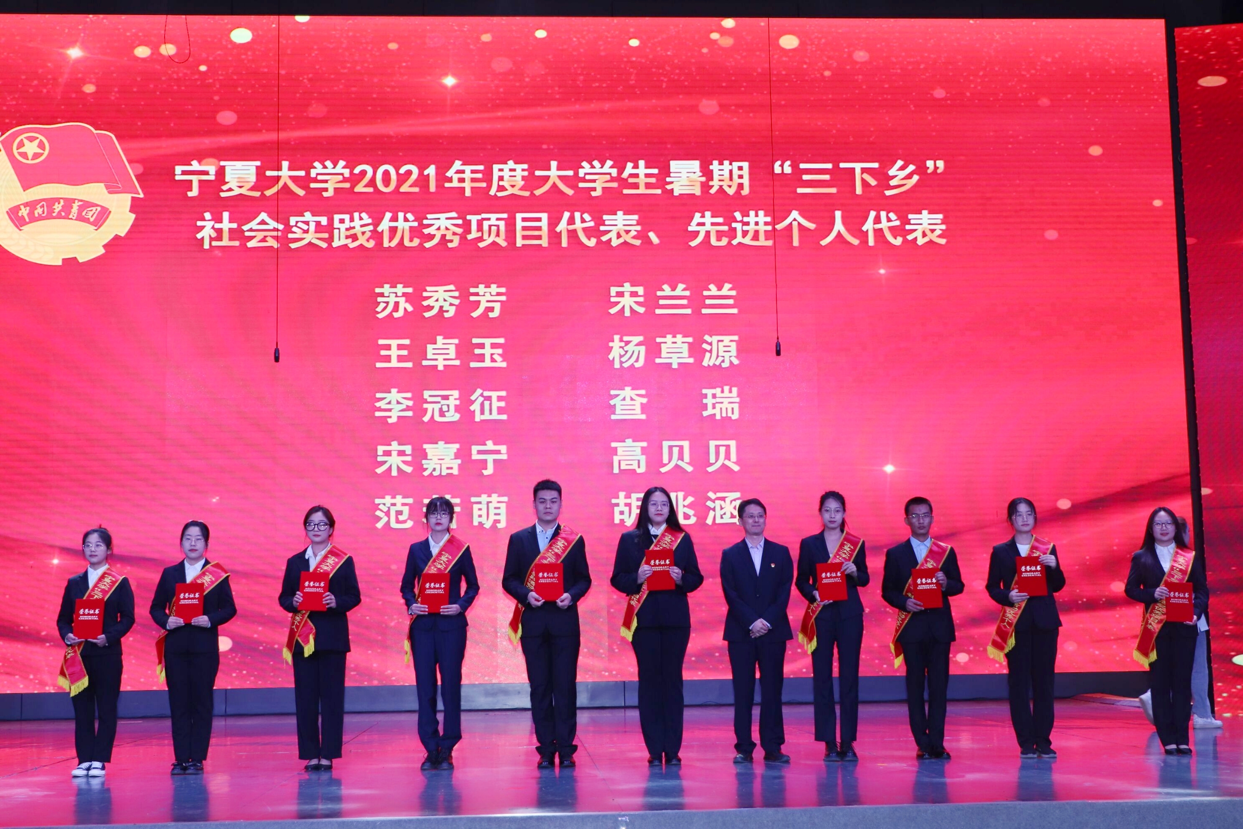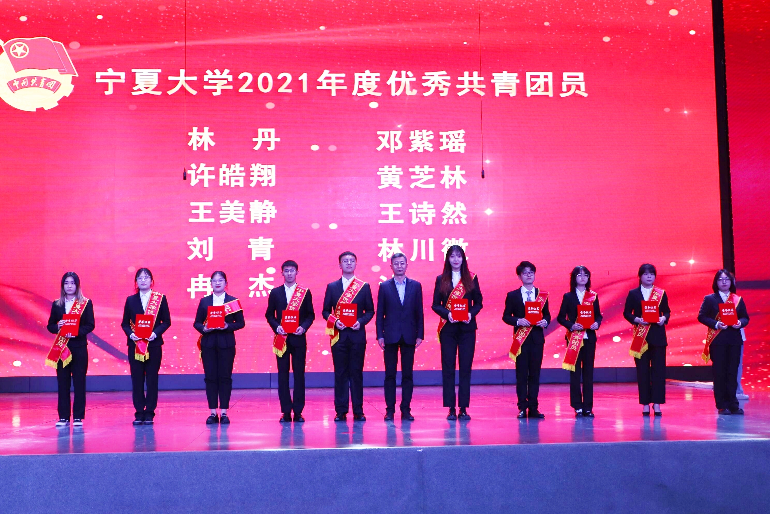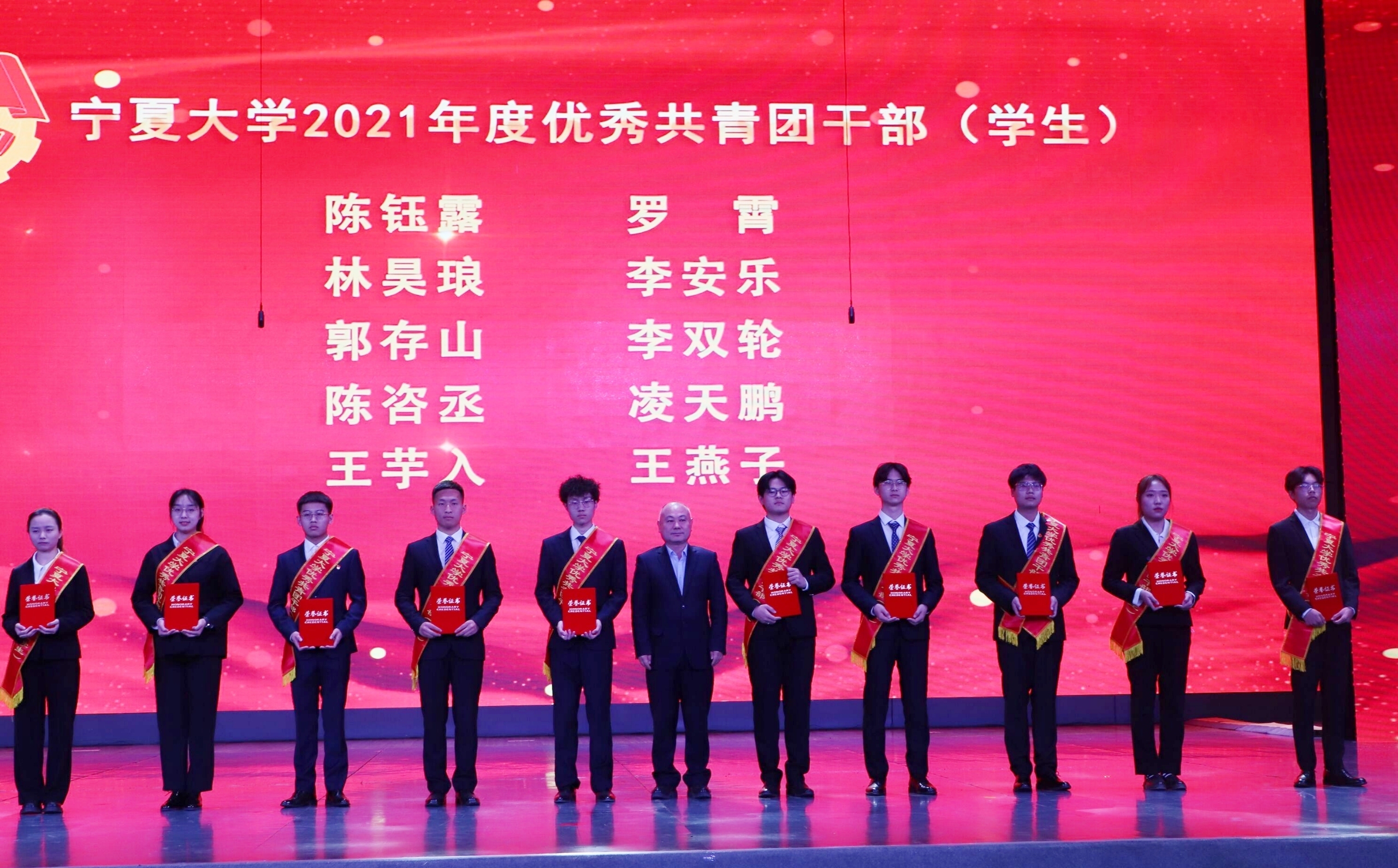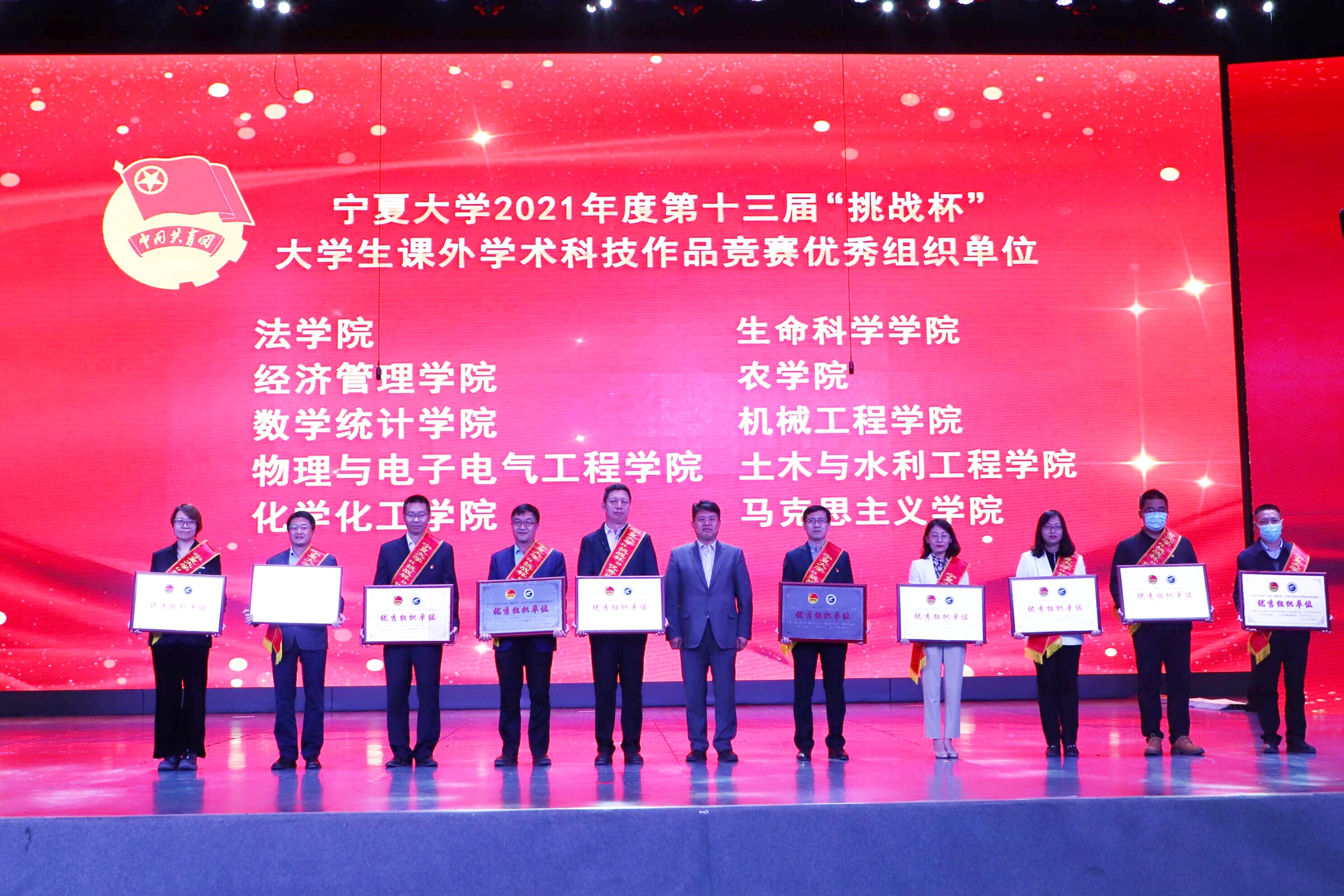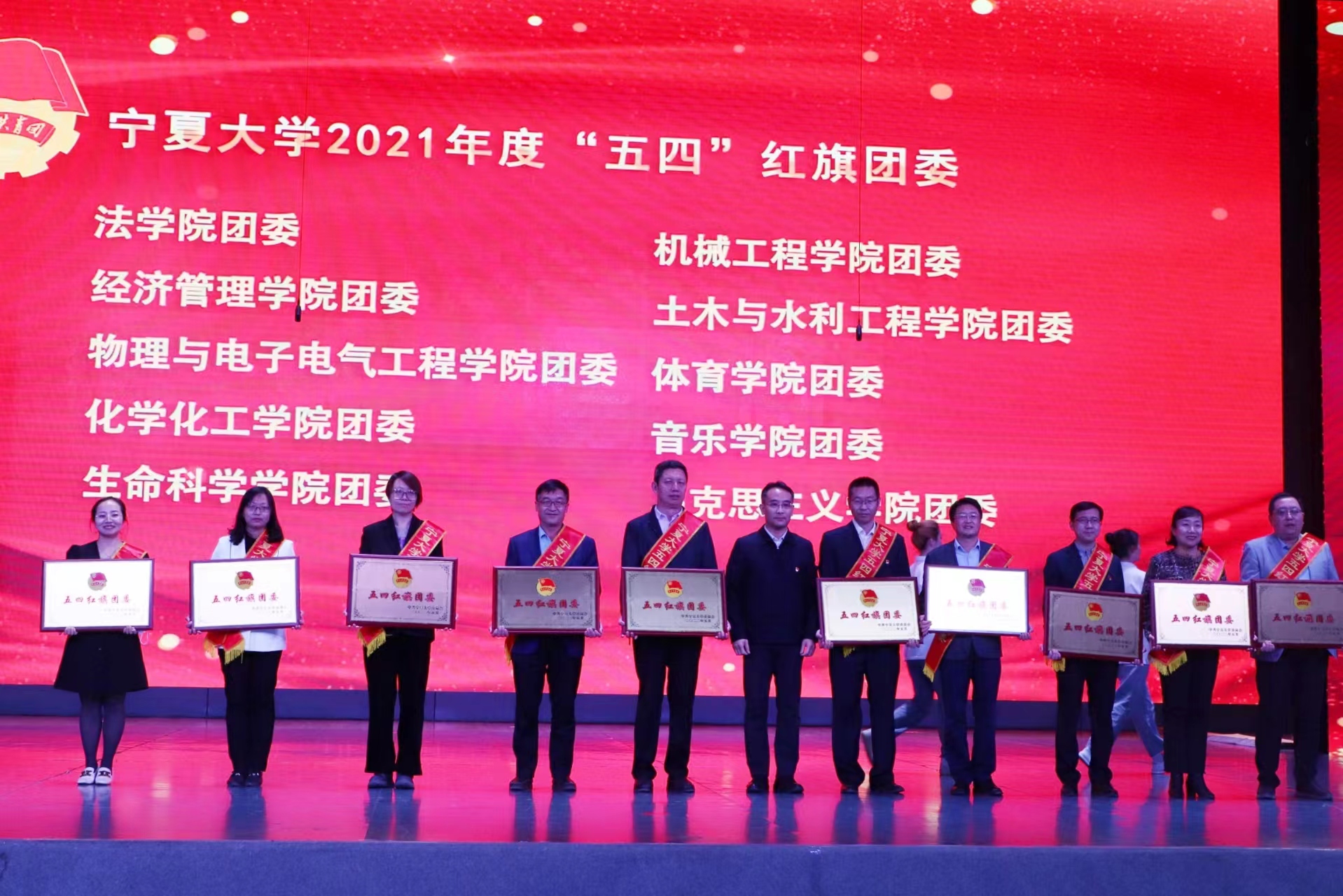 表彰晚会通过线上线下方式同时进行。学校办公室、党委组织部、宣传部、统战部、学生工作部(学生处),本科生院、研究生院、发展规划与学科建设处、科学技术研究院相关负责人,各学院党委(党总支)副书记,学院(书院)团委书记、副书记和青年学生代表一起参加了线下表彰活动。