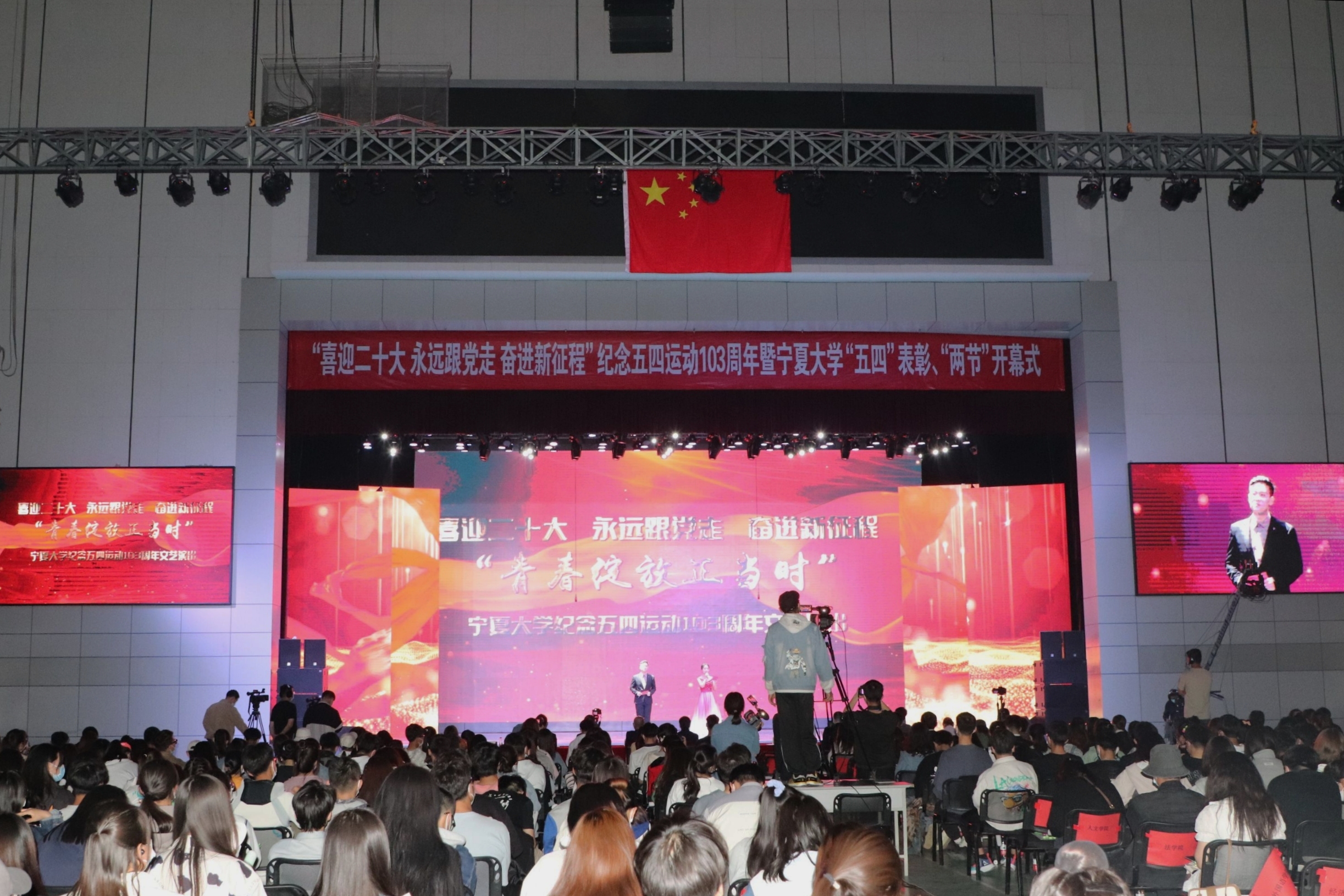 会上宣读了beat365唯一官方网站第二十四届校园科技文化艺术节暨第十四届学生社团文化节活动方案。2022年“两节”活动由品牌校园文化活动、学院特色单项活动和多彩学生社团活动三部分组成,活动以喜迎党的二十大胜利召开为主线,结合中国共产主义青年团成立100周年,围绕学校人才培养中心工作,旨在营造丰富多彩、积极向上的校园文化氛围,引领广大青年学子以更加昂扬的精神状态和奋斗姿态投身西部一流大学建设。表彰大会结束后,师生一起观看“青春绽放正当时”beat365唯一官方网站纪念五四运动103周年文艺演出。