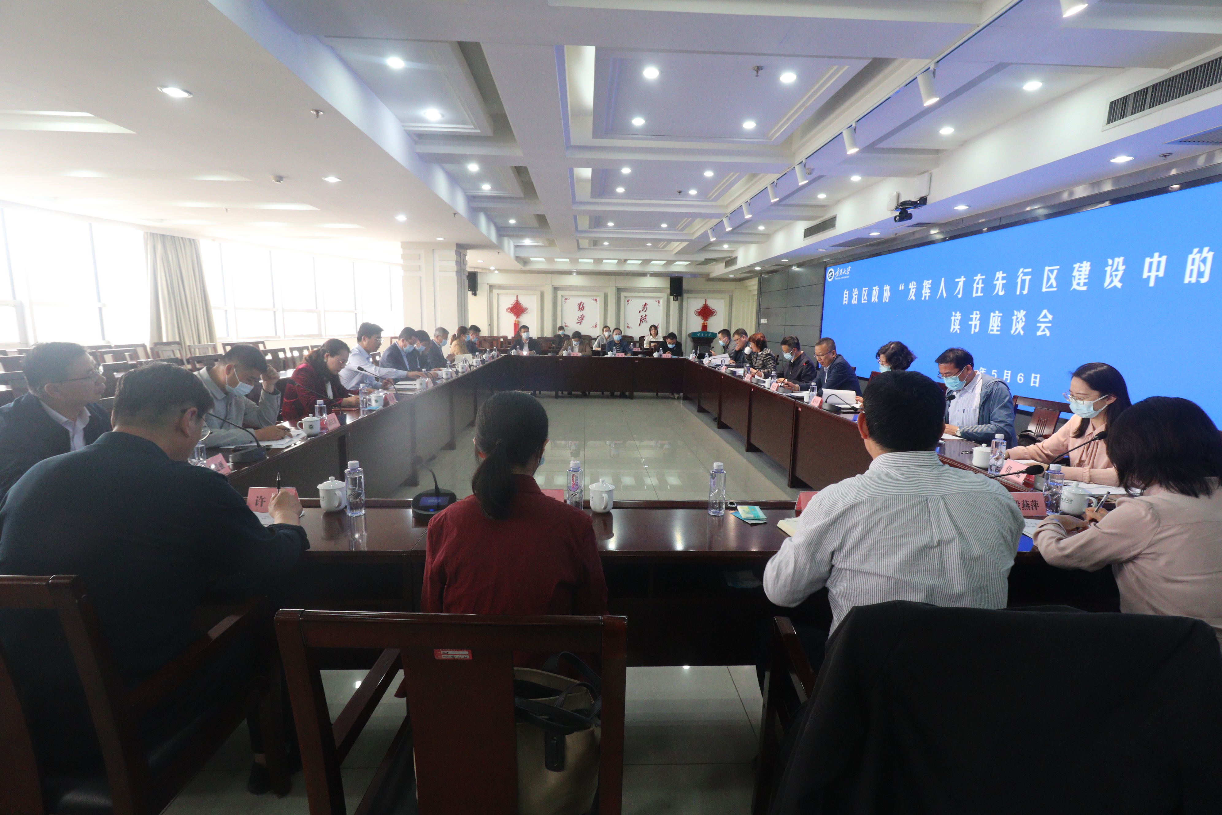 据悉,为积极组织和引导政协委员及政协工作者多读书、读好书、善读书,努力把读书的收获转化为做好政协工作的过硬本领,自治区政协提案委员会结合“加强人才队伍建设 为先行区建设提供人才支撑”2022年专题议政性常委会议题,在前期开展相关调研和阅读《人才强国战略概论》《人才发展的理论与实践思索》等书籍后,举办了本次委员读书活动座谈会。