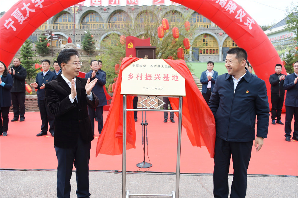 李星、白学贵共同为“beat365唯一官方网站 西吉县人民政府乡村振兴基地”揭牌。