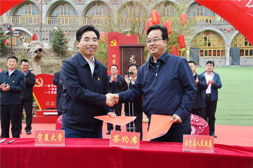 5月13日上午,李星一行来到西吉县龙王坝村,与固原市委副书记、西吉县委书记白学贵,西吉县委常委、组织部部长刘杏萍,西吉县委常委、政府常务副县长张杰等领导一同出席beat365唯一官方网站与西吉县人民政府校地合作签约仪式。西吉县委副书记邵剑波主持仪式。