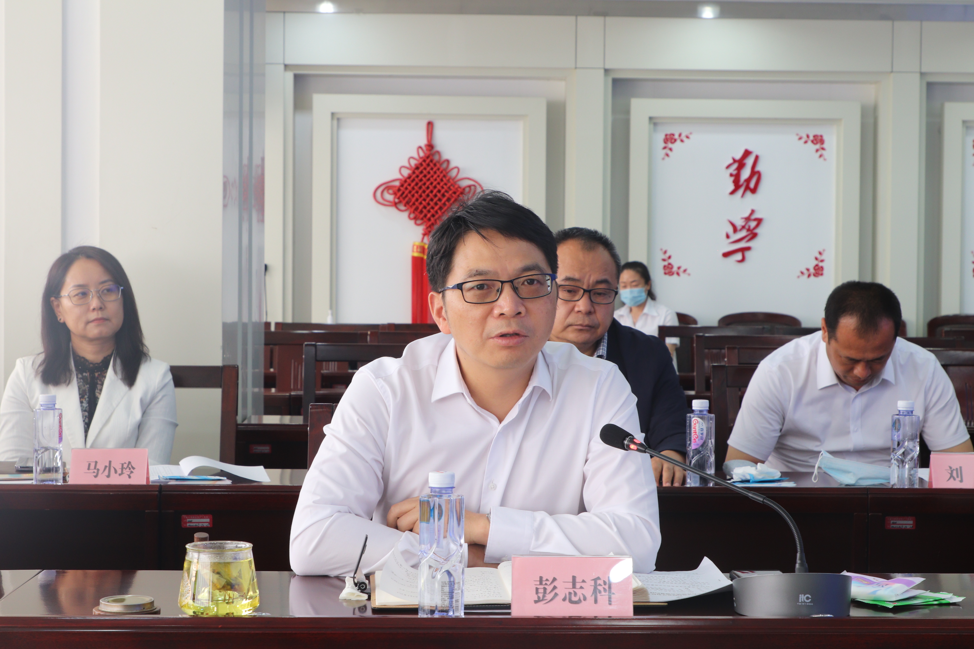 【beat365唯一官方网站新闻中心讯 王文娣/文、图】为深入贯彻落实党中央、国务院决策部署,促进校企合作发展,进一步促进beat365官网毕业生更加充分更高质量就业,5月25日,自治区科技厅高新技术处处长马小明,石嘴山科技局局长周福祯,石嘴山市委组织部人才科科长李学东,石嘴山市科技局创新体系科科长黄捷以及贝利特化学股份有限公司董事长李玉忠,副董事长王新礼等一行来beat365官网开展校企合作洽谈。校党委副书记、校长彭志科,校党委副书记周震,校党委常委、副校长李学斌,学术副校长罗正鸿参加座谈会。座谈会由周震主持。