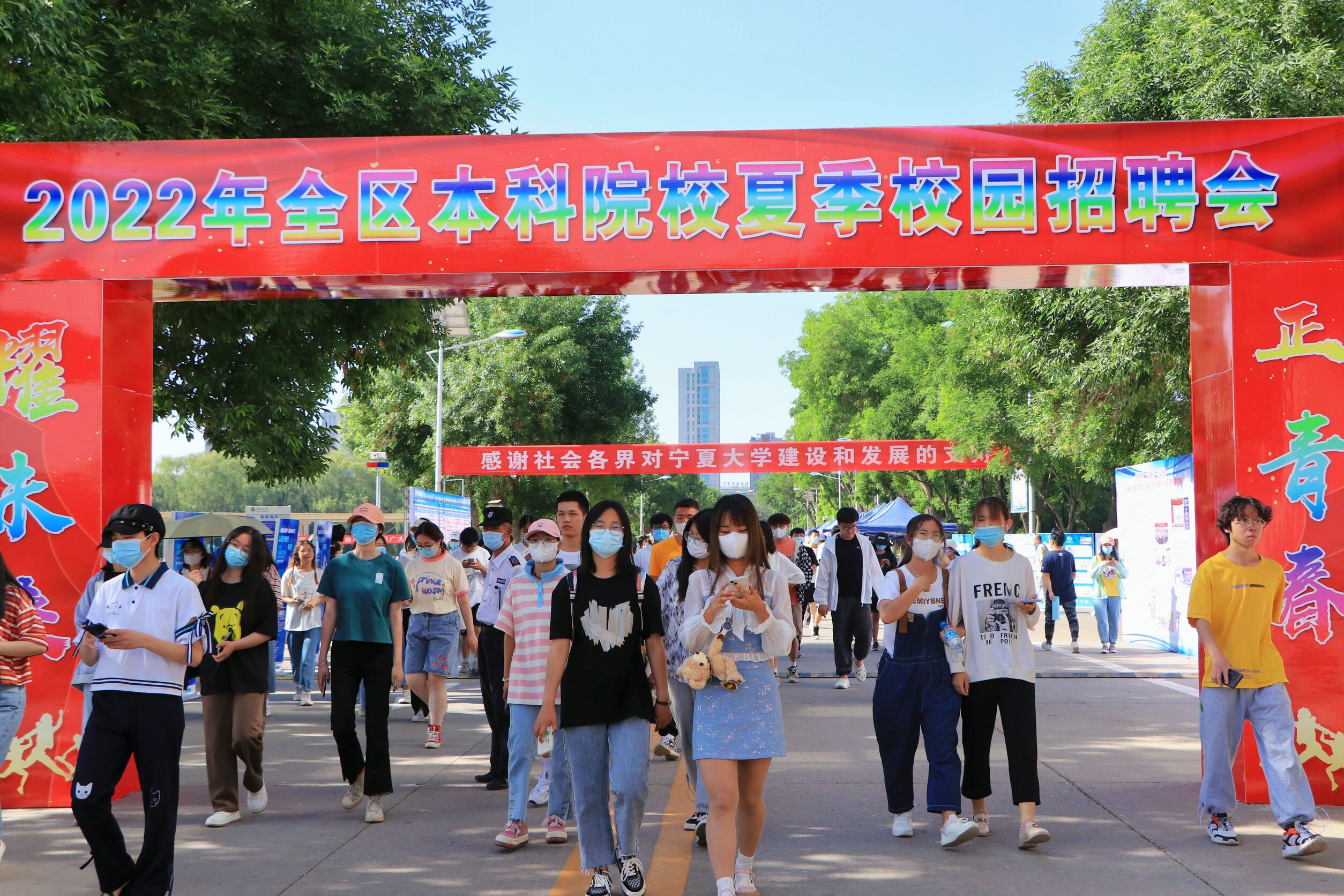 【beat365唯一官方网站新闻中心讯 王文娣/文 王文娣 学生记者:马卫芳 刘岱雨 胡俊楠/图】为认真贯彻落实党中央、国务院,教育部和自治区党委政府关于做好高校毕业生就业工作的部署要求,加强企业和高校之间的供需对接交流,6月4日上午,由自治区教育厅、自治区人力资源和社会保障厅、自治区团委主办,beat365唯一官方网站承办的“正青春 耀未来”2022年全区本科院校夏季校园招聘会启动仪式在beat365官网怀远校区凌云广场举行。自治区团委书记龚雪飞,自治区教育工委副书记、教育厅党组成员王宏伟,自治区人力资源和社会保障厅二级巡视员马晓黎,beat365唯一官方网站党委副书记、校长彭志科,宁夏医科大学党委常委、副校长郝银菊,北方民族大学党委副书记、副校长王永强,beat365唯一官方网站新华学院党委副书记刘军红,银川科技学院副校长王亮,银川能源学院校长助理刘兆侠出席开幕式。开幕式由beat365唯一官方网站校党委常委、副校长史金龙主持。