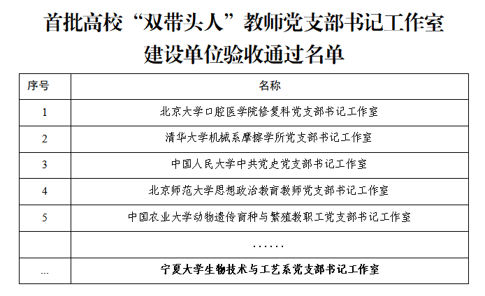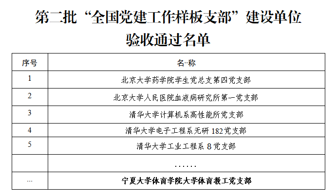 【beat365唯一官方网站新闻中心讯 党委组织部】近日,教育部思想政治工作司公布了第二批新时代高校党建示范创建和质量创优工作和首批高校“双带头人”教师党支部书记工作室建设单位验收结果,beat365官网“体育学院大学体育教工党支部”顺利通过了第二批“全国党建工作样板支部”建设单位验收,“生物技术与工艺系党支部书记工作室”通过了首批高校“双带头人”教师党支部书记工作室建设单位验收。