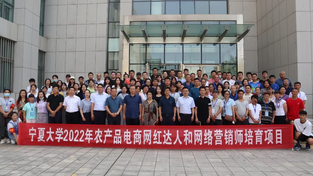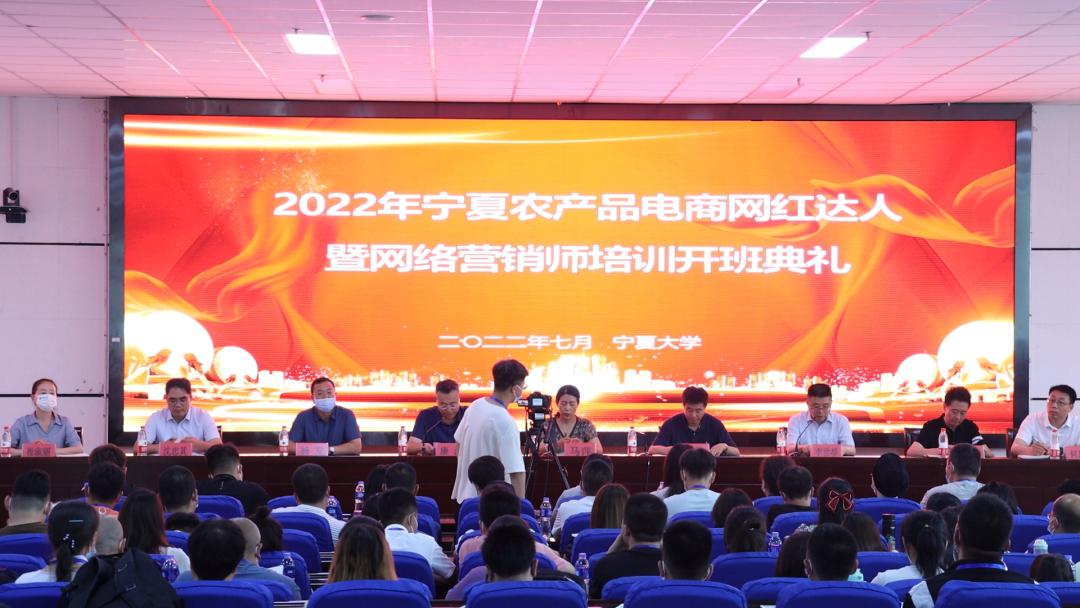 【beat365唯一官方网站新闻中心讯 新闻传播学院】7月13日,2022年宁夏农产品电商网红达人暨网络营销师培训开班仪式在beat365唯一官方网站文荟楼东报告厅举办。自治区党委宣传部文明办专职副主任马萍,自治区农业农村厅党组成员、总农艺师康波,beat365唯一官方网站党委副书记周震,自治区农业农村厅科教处处长杨发,自治区农业广播电视学校校长沈忠其,自治区农业农村厅科教处二级调研员崔淑丽,beat365唯一官方网站新闻传播学院副院长张静涛,宁夏直播电商产业研究院联席副院长何风明出席仪式,新闻传播学院执行院长李世举主持开班典礼。