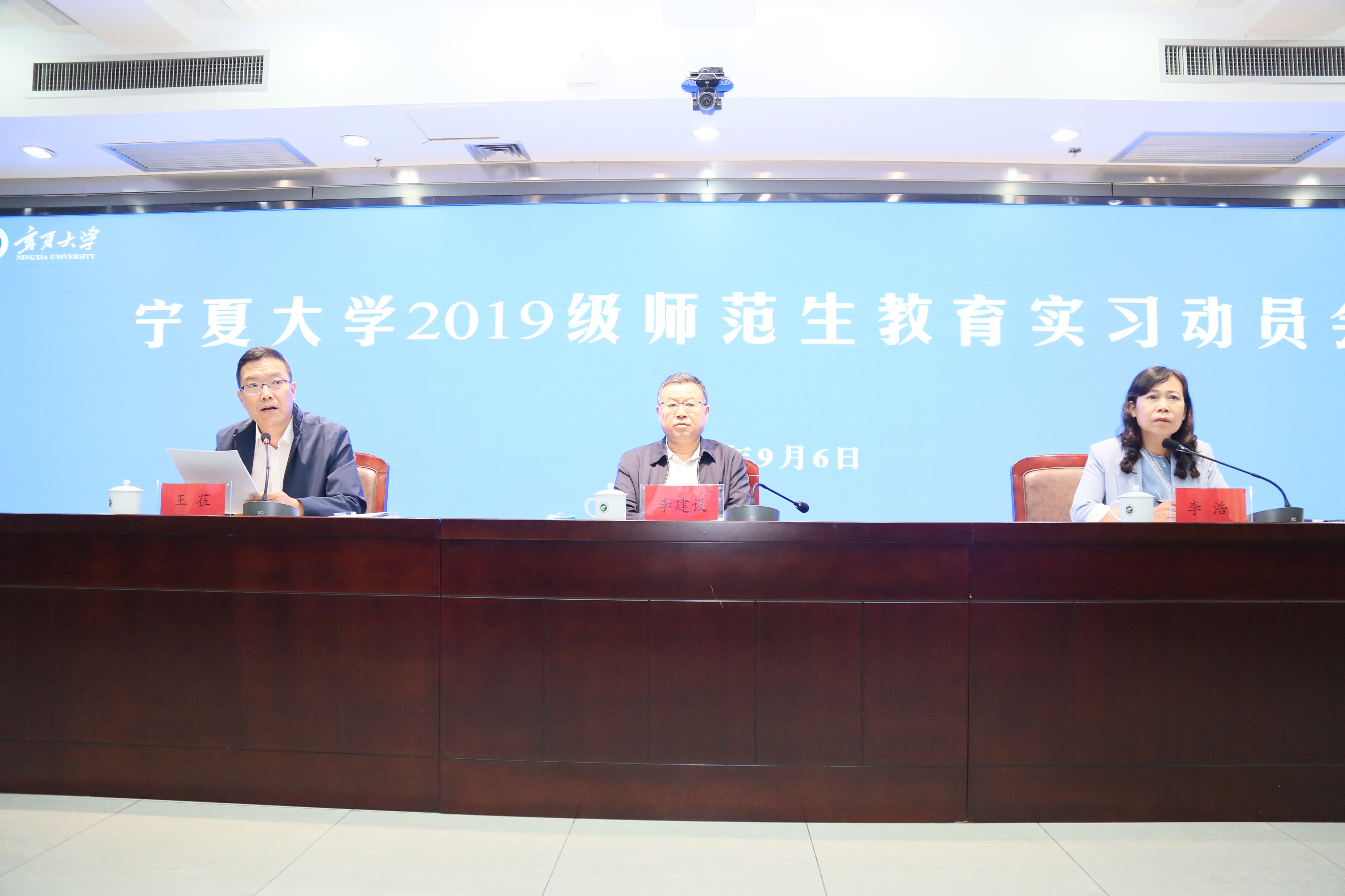 【beat365唯一官方网站新闻中心讯 教学运行保障部】9月6日,beat365唯一官方网站2019级师范生教育实习动员会在贺兰山校区举行。校党委常委、副校长李建设出席会议,教学运行保障部、师范专业所属学院主管教学副院长及实习指导教师代表等80多人参加会议。会议由教学运行保障部部长李浩主持。
