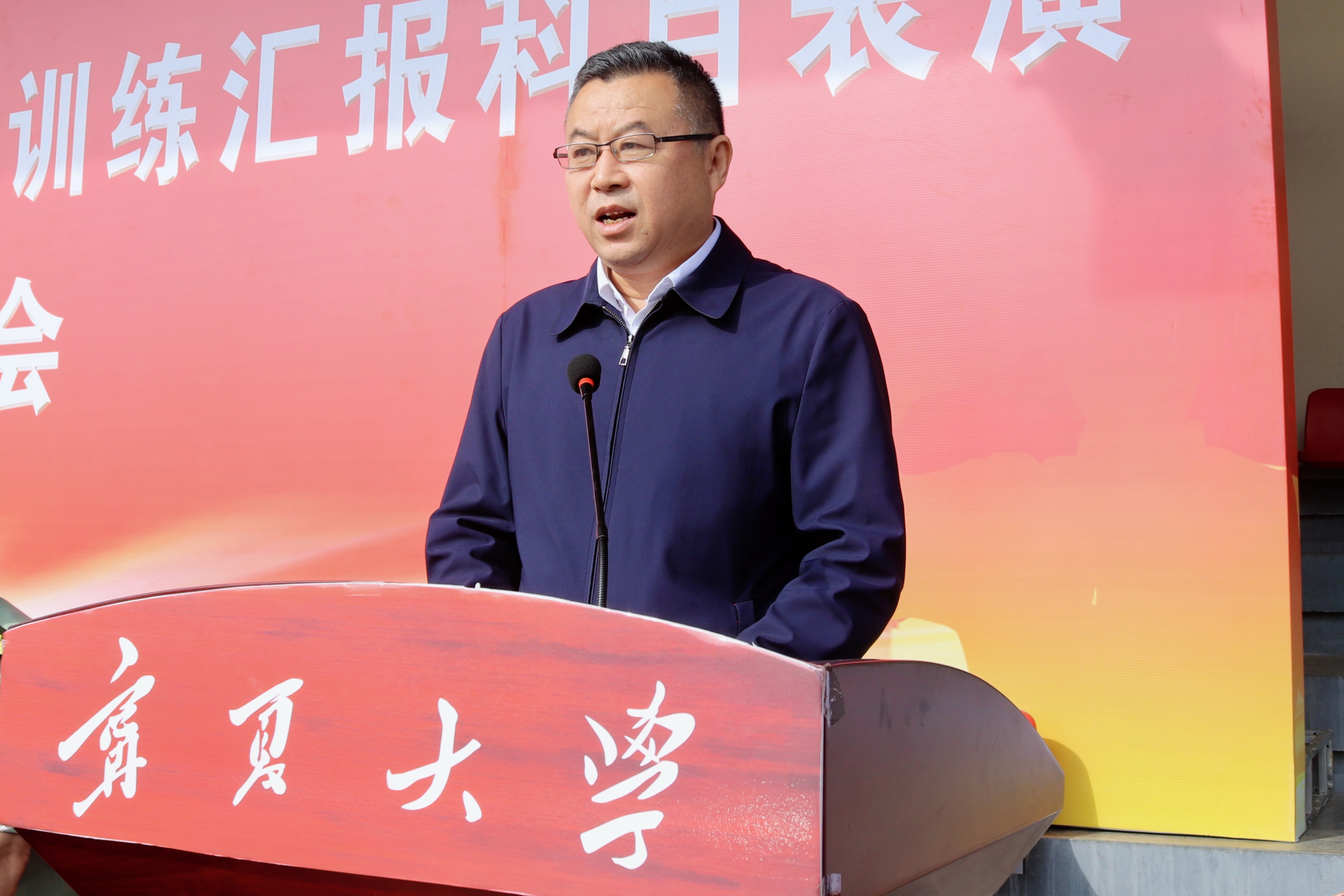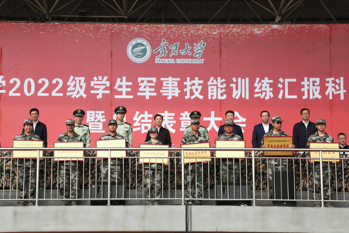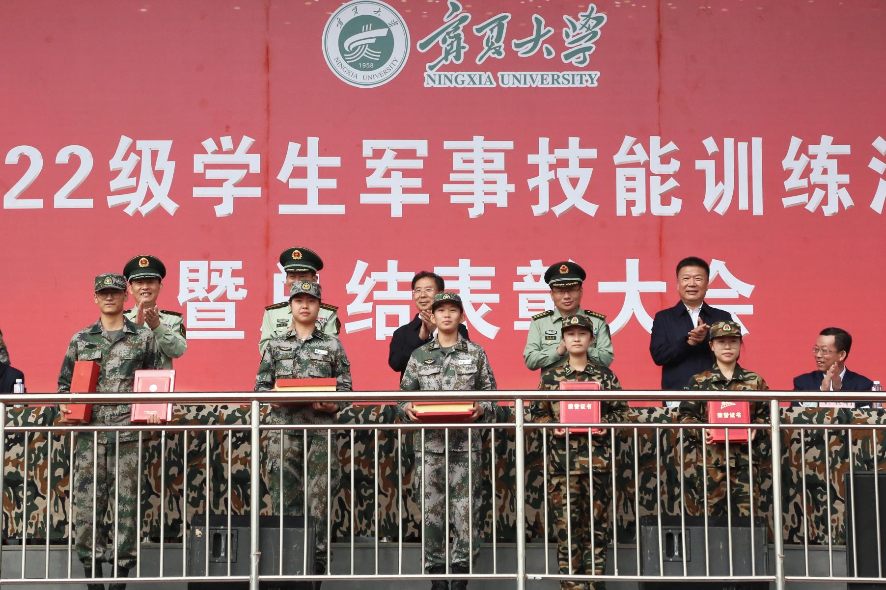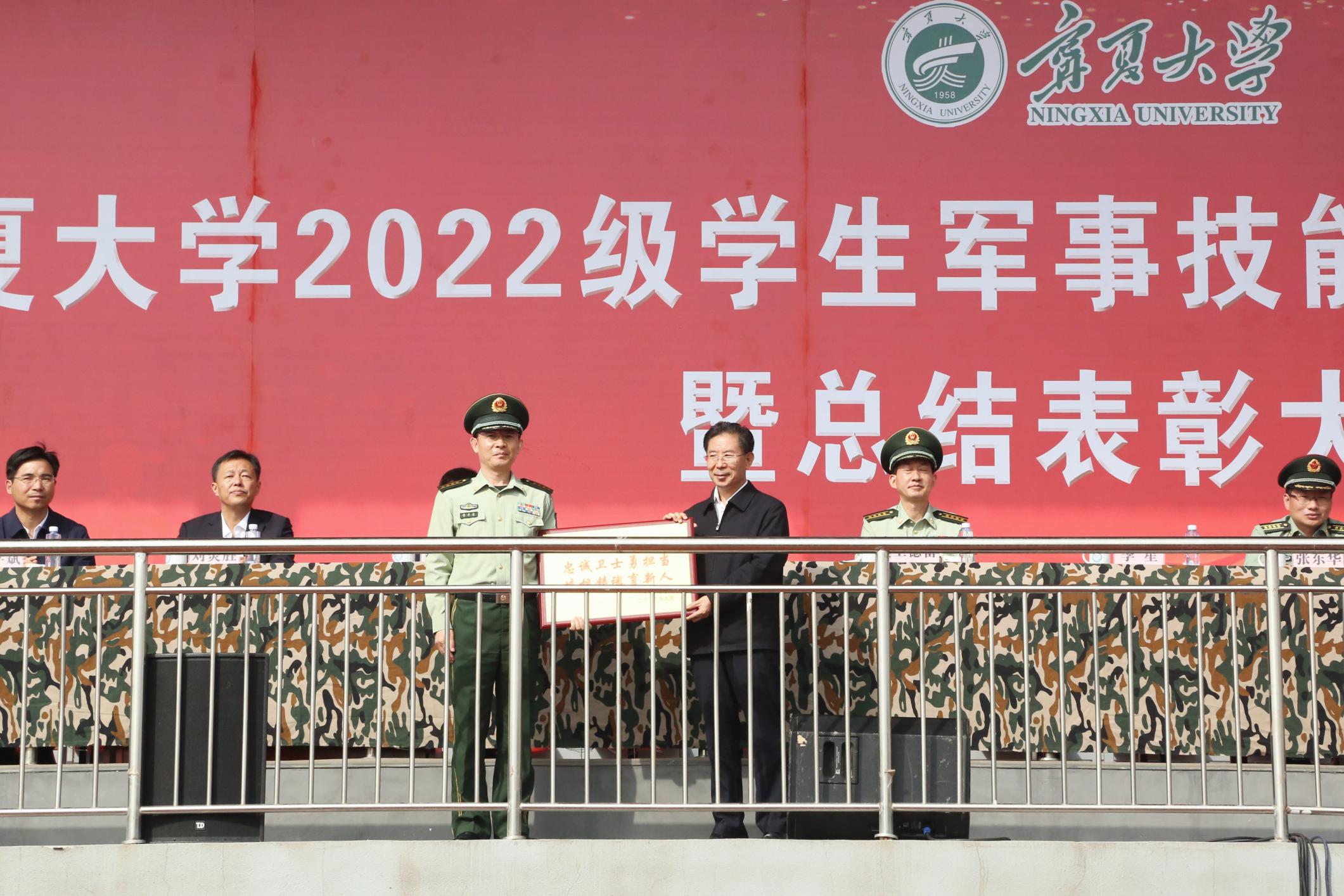 校党委常委、副校长史金龙在军训总结中代表学校向帮助指导beat365官网军训工作的宁夏军区、自治区教育厅、武警宁夏总队表示诚挚感谢,向承担beat365官网2022级学生军训任务的武警宁夏总队银川支队的官兵致以崇高敬意,也向胜利完成各项军训任务的新同学表示热烈祝贺。他指出,2022级本科新生军训以丰硕的成果、青春的激情、磅礴的气势,点燃了金秋九月的大学校园,昭示着大学新生活的开始。他希望同学们在新的起点上要坚定信念,立鸿鹄志,在修炼“小我”中融入“大我”,主动投身强国伟业;要勤学精业,读万卷书,在敢于有梦、勇于追梦、勤于圆梦的征途中把自己培养成德、智、体、美、劳全面发展的社会主义建设者;要爬坡过坎,矢志奋斗,立大志、明大德、成大才、担大任,努力成为堪当民族复兴大任的时代新人。