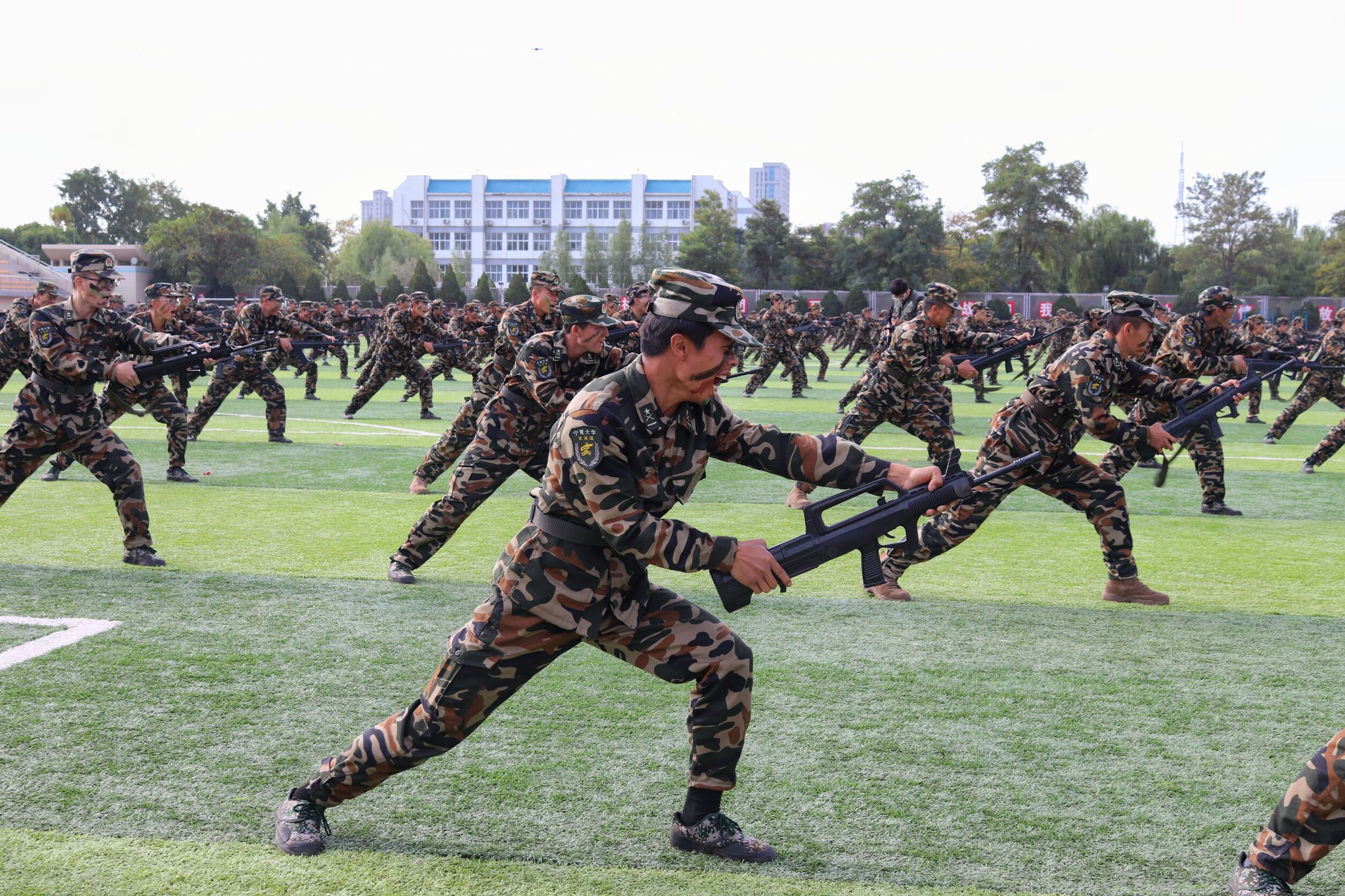 随后,训练有素、闻令而动的队形摆演,气势震天、招式敏捷的匕首操、刺杀操,刚劲有力、实战性强的擒敌拳,攻防兼备、势如破竹的防暴队形,精进勇敢、灵敏机警的分队战术及激昂雄浑、响彻云霄的军歌展演等科目轮番上演,赢得现场阵阵喝彩与掌声。