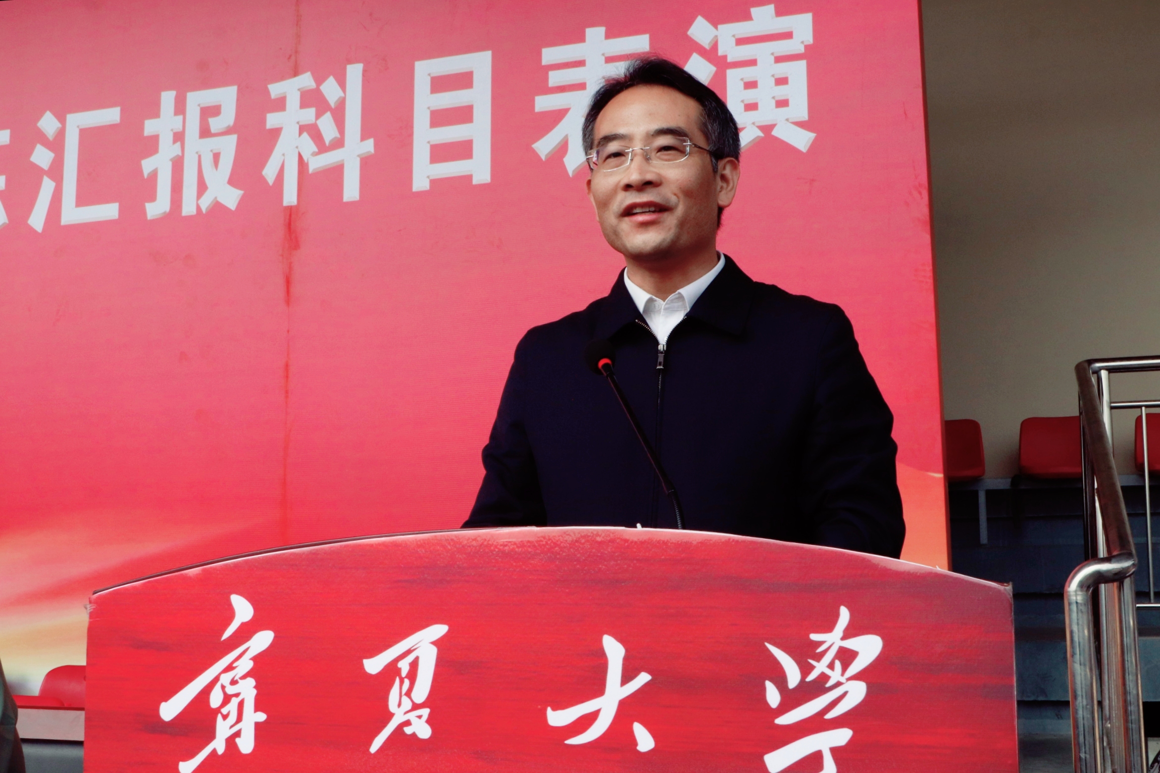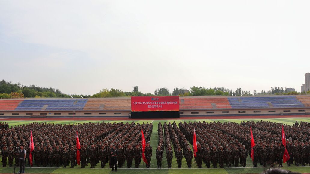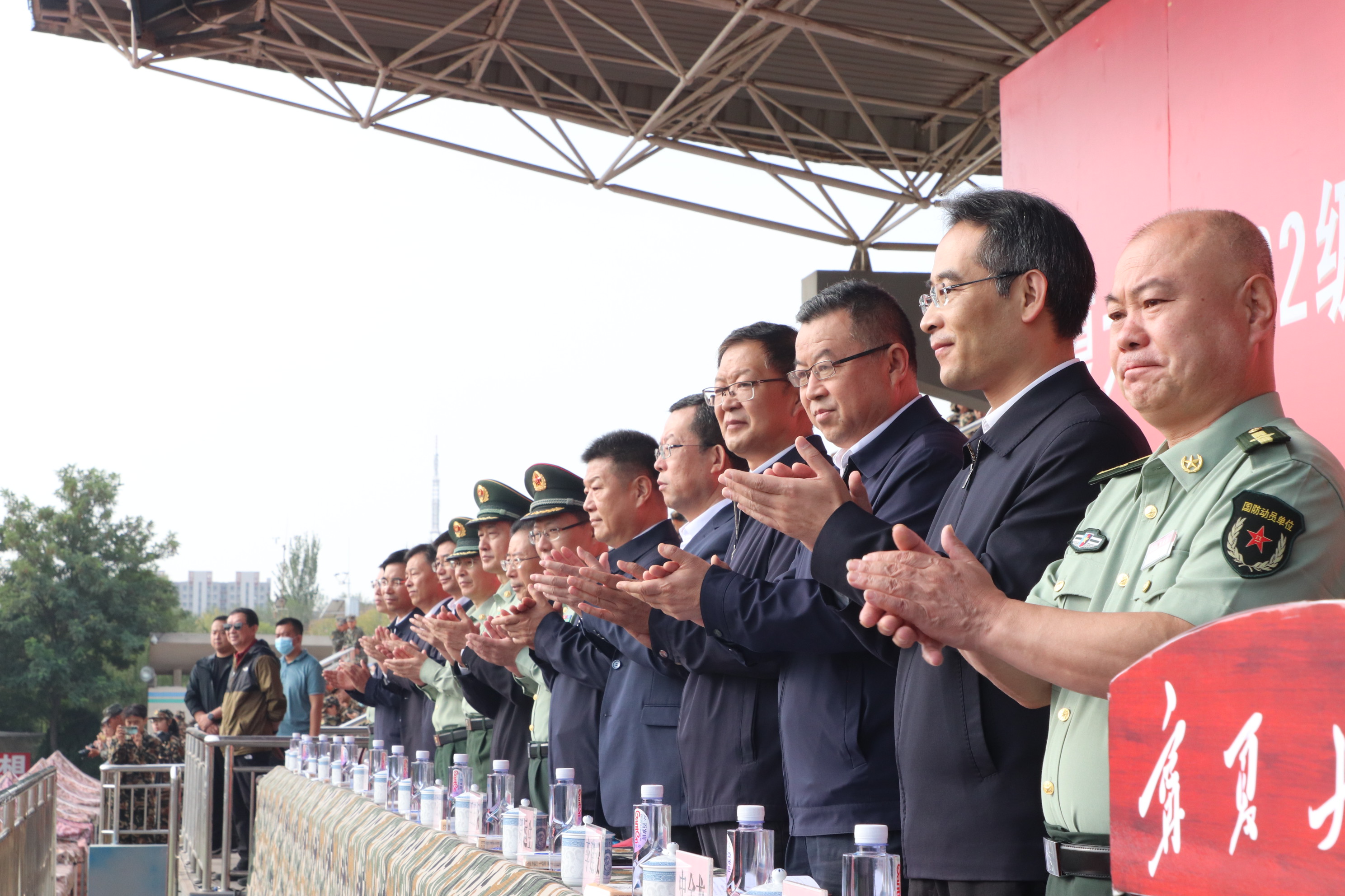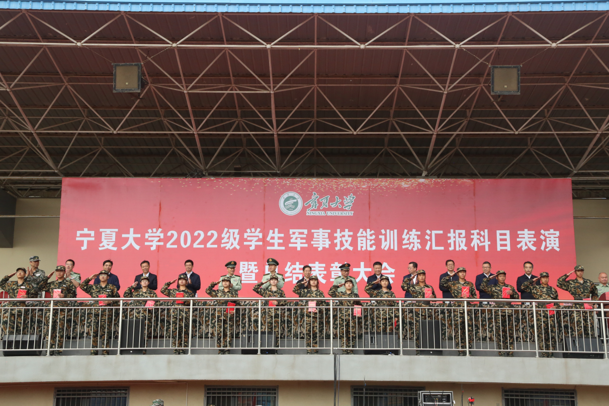 2022级本科生军训科目汇报表演拉开序幕后,校党委书记李星在人民武装部(国防教育教学中心)部长(主任)、军训团团长方非的陪同下检阅全体军训方队。2022级新生整齐列队、军容严整,用高昂的士气、坚毅的目光、勃勃的英姿、嘹亮的口号接受检阅,展现了宁大人“不怕困难,不畏风寒;根深叶茂,本固枝荣”的“沙枣树精神”。