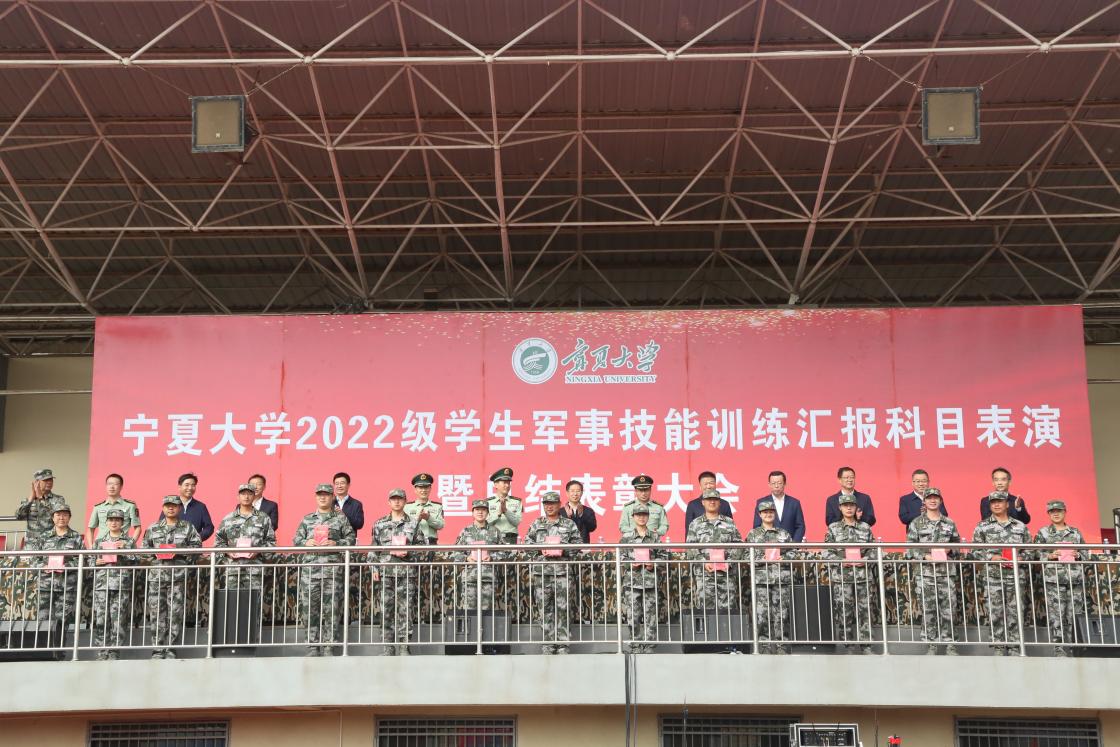 【beat365唯一官方网站新闻中心讯 冯禹君/文 王文娣 学生记者马卫芳、撒盼盼/图】9月18日,beat365官网在怀远校区田径场隆重举行2022级本科生军训汇报科目表演暨总结表彰大会。校领导李星、王玉炯、周震、周运生、李建设、刘炎胜、史金龙、李学斌,宁夏军区战备建设局大校副局长张东华、武警宁夏总队大校副参谋长王德富、自治区人民政府教育督导室专职副主任杨宝文、武警宁夏总队银川支队大校政治委员徐益会出席大会。校党委学生工作部(学生处)部(处)长、军训团政委马正亮主持大会。