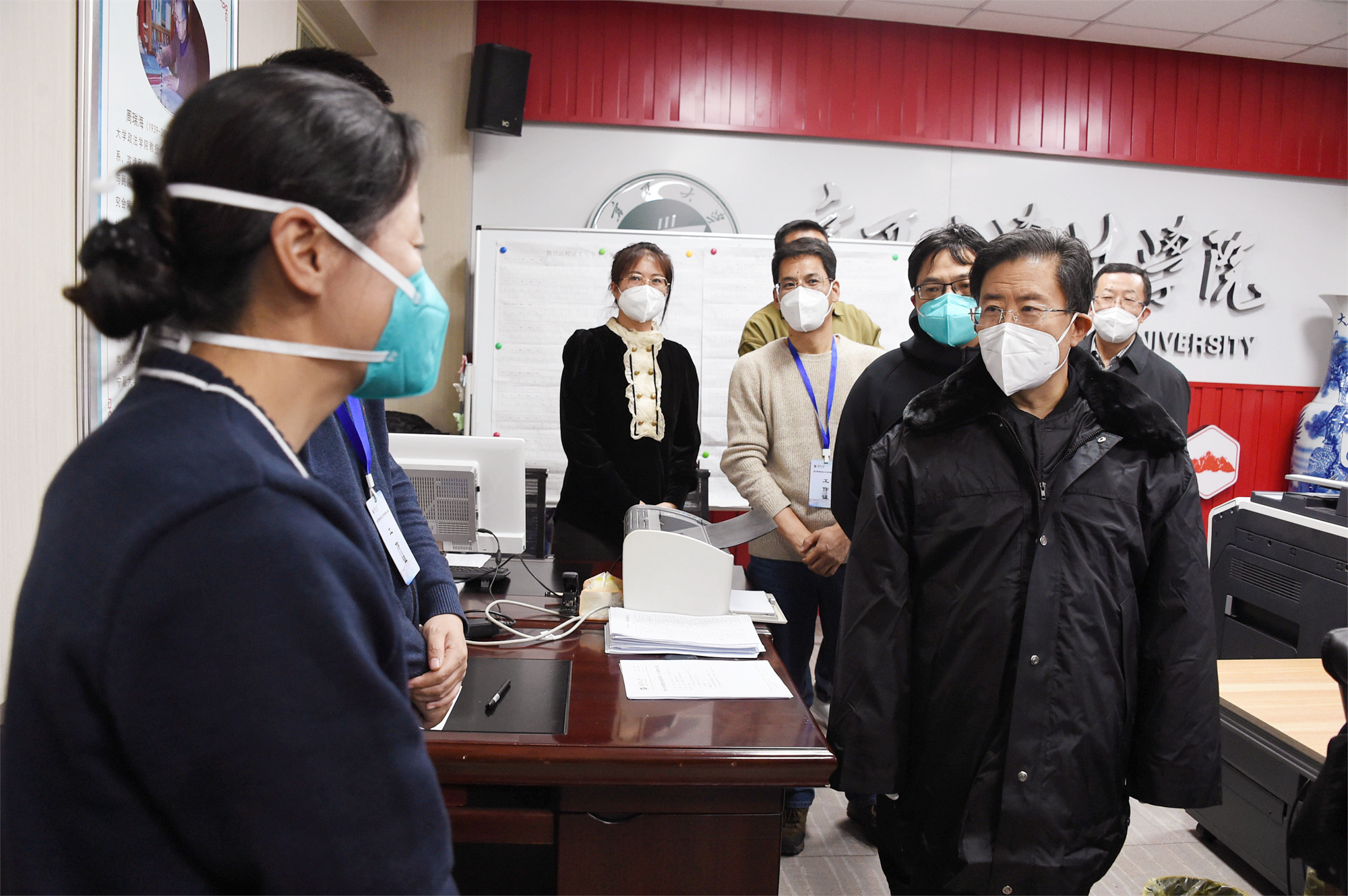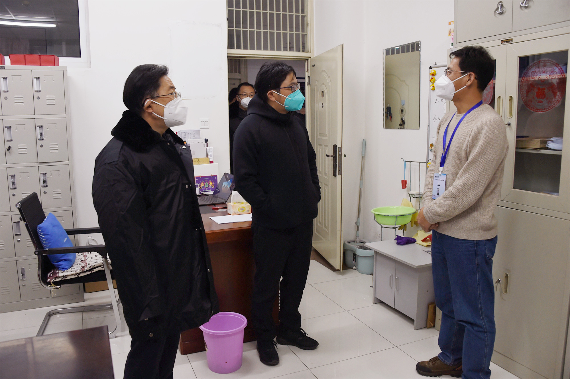 校领导首先看望了即将上岗值守的教职员工,代表学校党委对大家的无私奉献、辛勤付出和连续奋战表示衷心的感谢,并希望一线工作人员严格操作规范,做好安全防护,关爱自己的身心健康,咬紧牙关继续坚持,攻坚克难努力取得这场没有硝烟的疫情防控歼灭战的最终胜利。