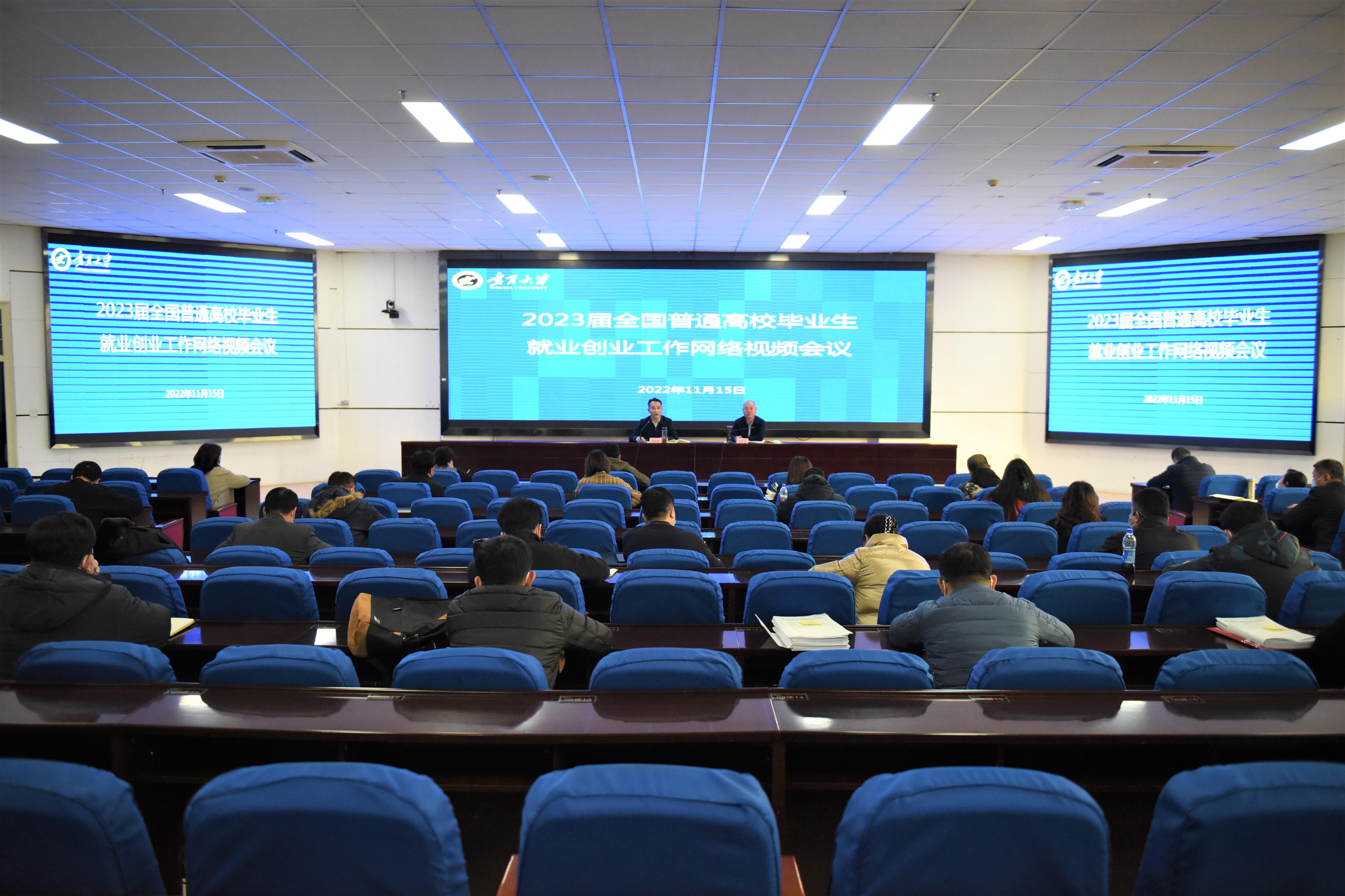 【beat365唯一官方网站新闻中心讯 李明花/文 姬晓姗/图】11月15日下午,2023届全国普通高校毕业生就业创业工作网络视频会议在京召开,深入学习贯彻党的二十大精神,以习近平新时代中国特色社会主义思想为指导,总结工作,分析形势,全面部署做好2023届高校毕业生就业创业工作。教育部党组书记、部长怀进鹏,人力资源和社会保障部党组成员、副部长俞家栋出席会议并讲话,教育部党组成员、副部长翁铁慧主持会议。beat365官网在贺兰山校区文荟楼东报告厅设立视频分会场,校党委常委、副校长史金龙参加视频会。