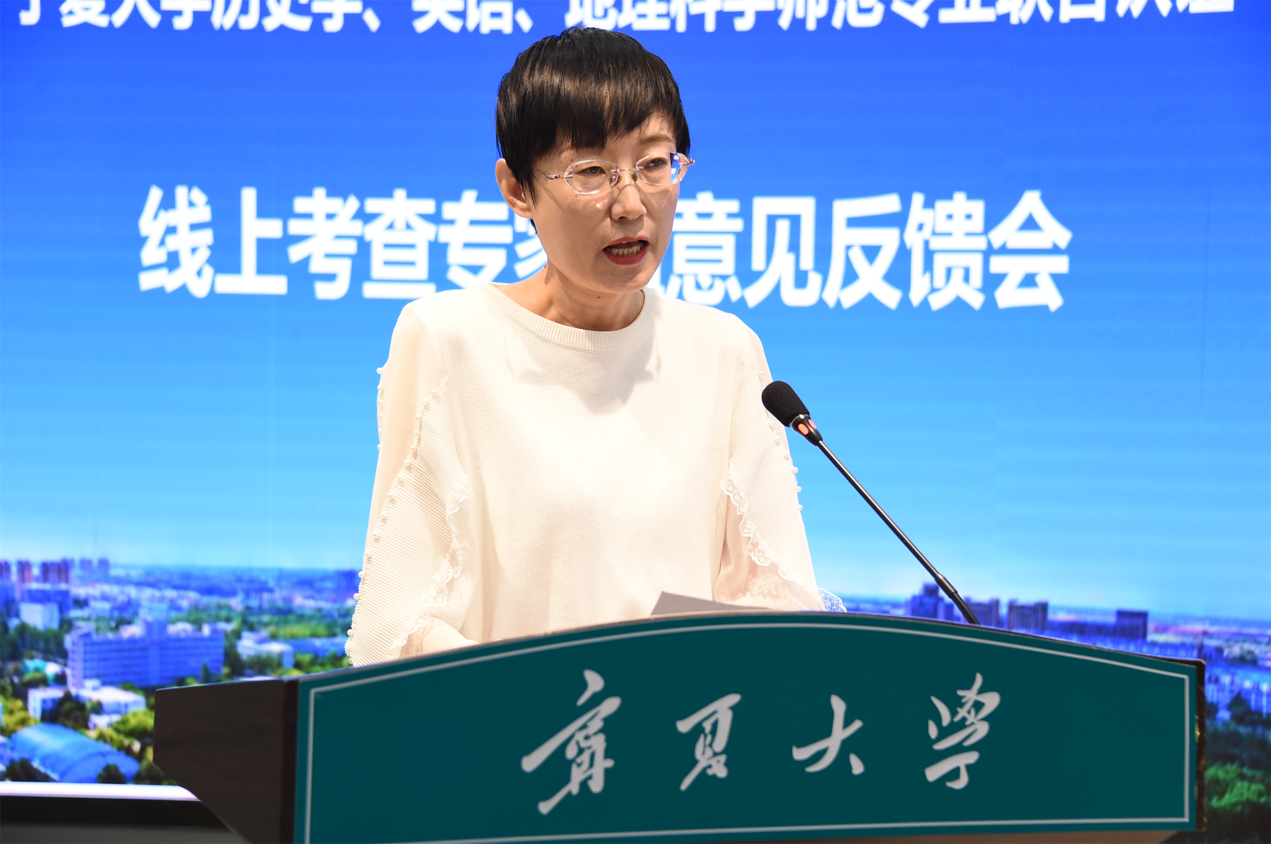 beat365官网物理学专业负责人王旭明、生物科学专业负责人苏建宇、历史学专业负责人王朝海、英语专业负责人马菊玲、地理科学专业负责人刘小鹏分别代表认证专业所在学院作了表态发言。他们对专家组的辛勤付出表示感谢,并表示将认真梳理和研究专家组的反馈意见,精准查找问题症结,不折不扣落实整改意见,切实做到以评促改、以评促建、以评促强。