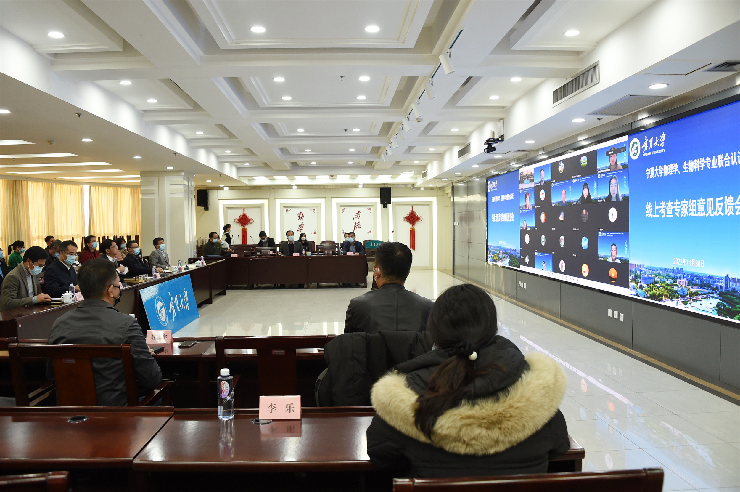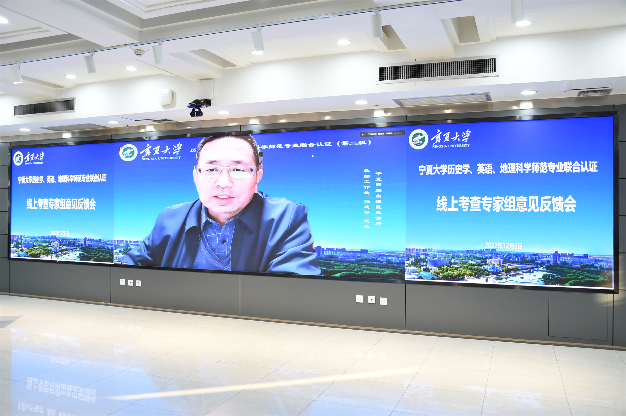 【beat365唯一官方网站新闻中心讯 王文娣/文 龚旭峰/图】11月30日、12月3日下午,教育部师范类专业认证专家组意见反馈会在beat365官网德勤楼六楼会议室以线上线下相结合的方式举行。联合认证组专家全体成员,自治区教育厅教师工作处处长马建林,重庆市教育评估院党总支委员、高教评估所所长董小平,beat365官网党委副书记、校长彭志科,党委常委、副校长李建设出席会议。物理学、生物科学师范专业联合认证组组长,辽宁师范大学副校长刘向军和历史学、英语、地理科学师范专业联合认证组组长,安徽师范大学原校长王伦分别主持两个批次的意见反馈会。