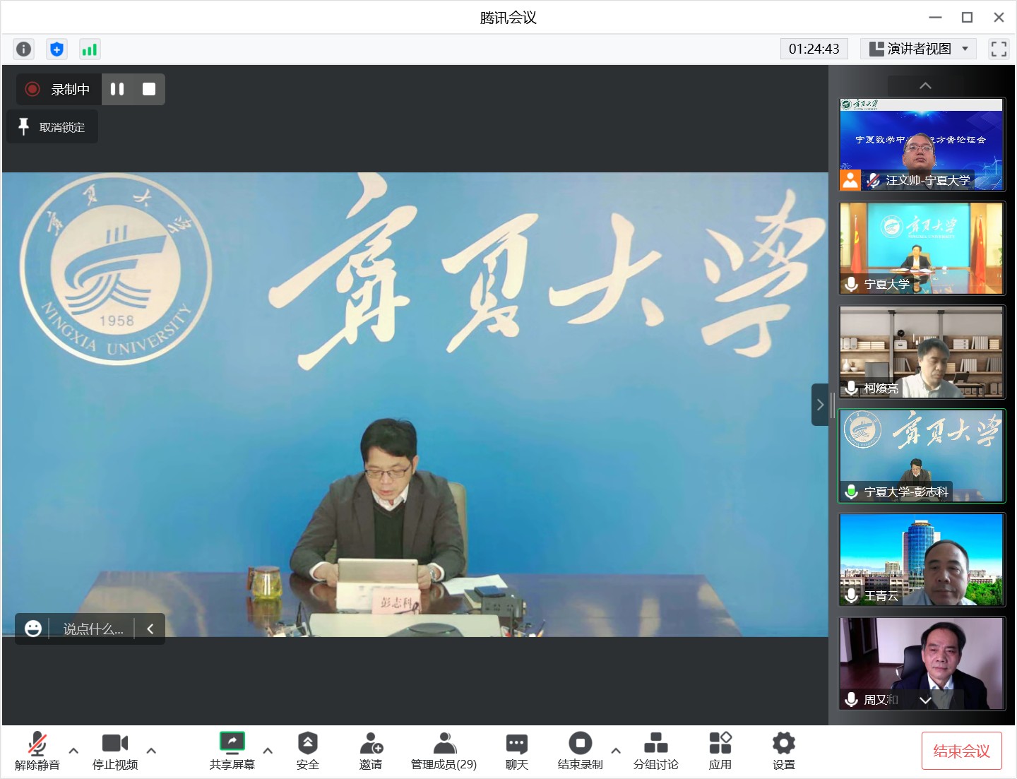 彭志科向参加此次论证会的各位专家表示热烈欢迎,感谢与会专家为宁夏数学中心建设工作把脉问诊、建言献策。他表示,宁夏数学中心的成立,将吸纳更多有实践经验和科研能力的人才,形成基础研究和科研技术攻关团队,聚焦、凝练和解决一批国家重大科技任务、重大工程和区域、企业发展重大需求中的数学问题,有效推进数学与工程应用、产业化的对接融通,筑牢基础数学在科技创新发展中的基础地位。他希望通过专家们的论证和指导,能够加快推进宁夏数学中心早日成立,为推动地方经济产业发展贡献数学力量。