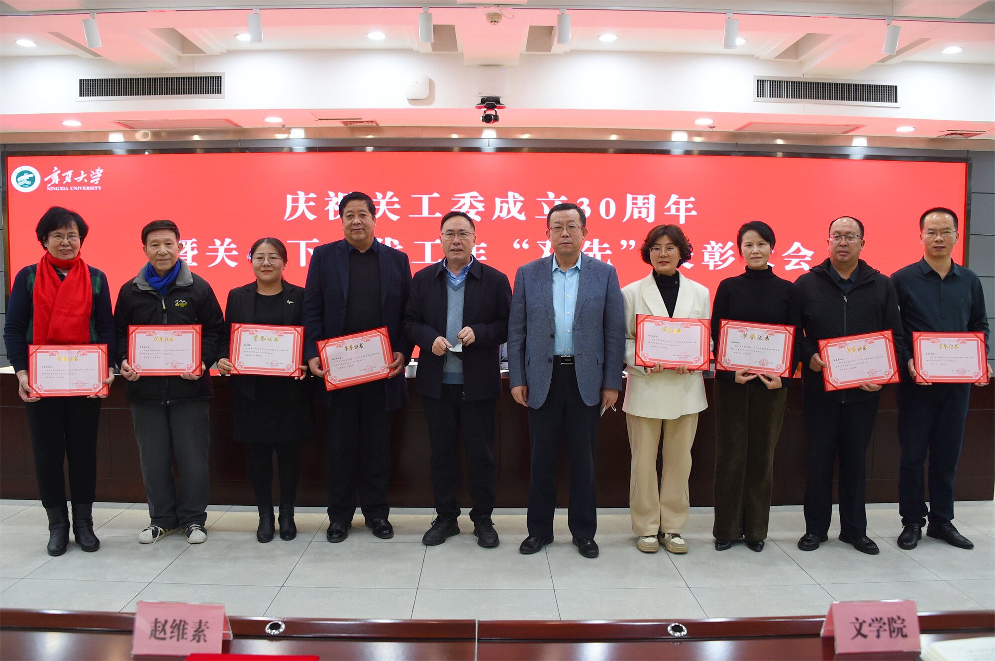 【beat365唯一官方网站新闻中心讯 冯禹君/文 龚旭峰/图】为深入学习贯彻习近平总书记对关心下一代工作的重要指示批示精神,庆祝学校关工委成立30周年,表彰关心下一代工作先进集体和先进个人,全面总结学校关工委工作,12月15日,学校召开庆祝关工委成立30周年暨关心下一代工作“双先”表彰大会。自治区关工委主任黄超雄,校党委书记李星,校党委副书记王玉炯,校关工委主任谢应忠出席大会。校党委常委、副校长、关工委主任李学斌主持大会。