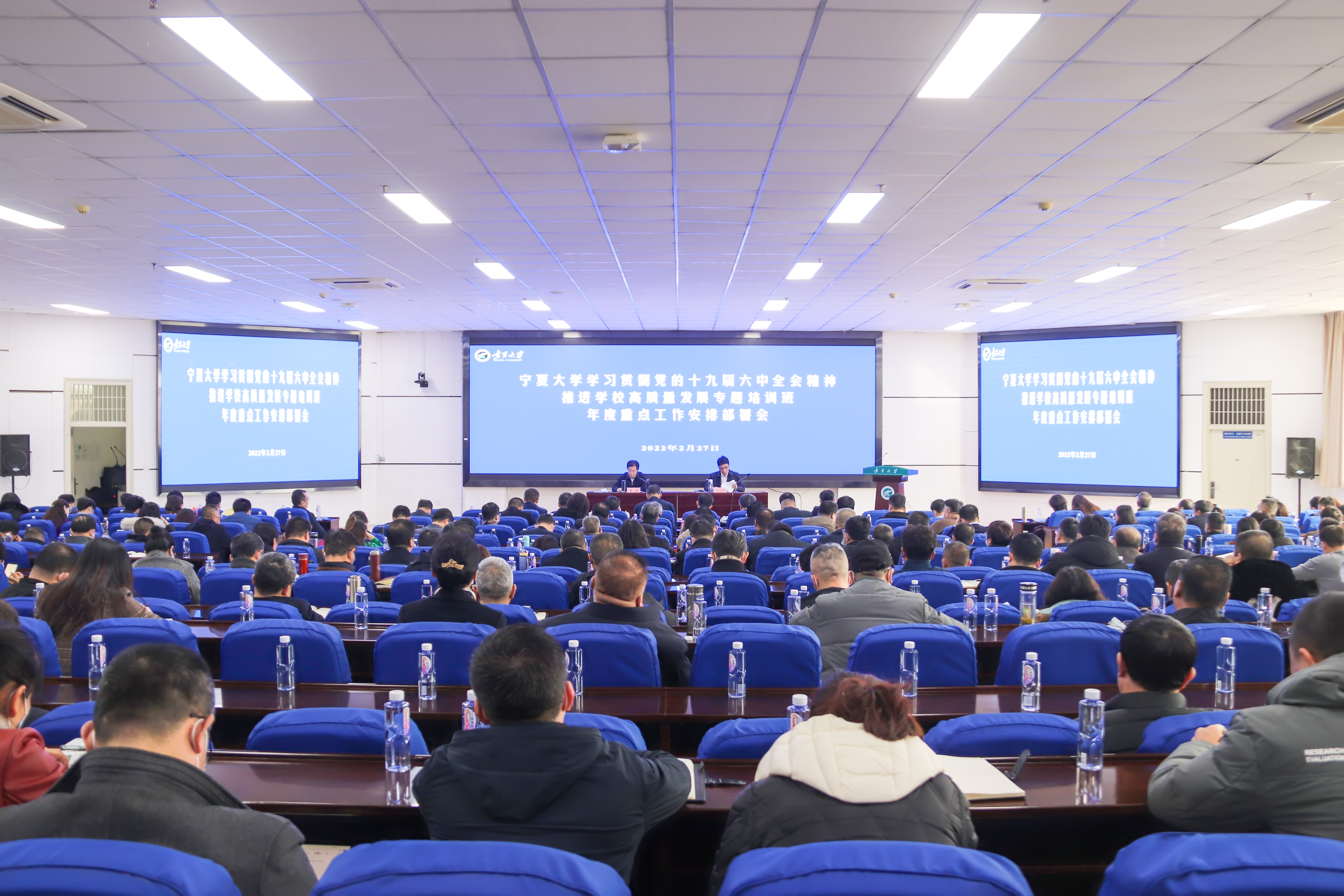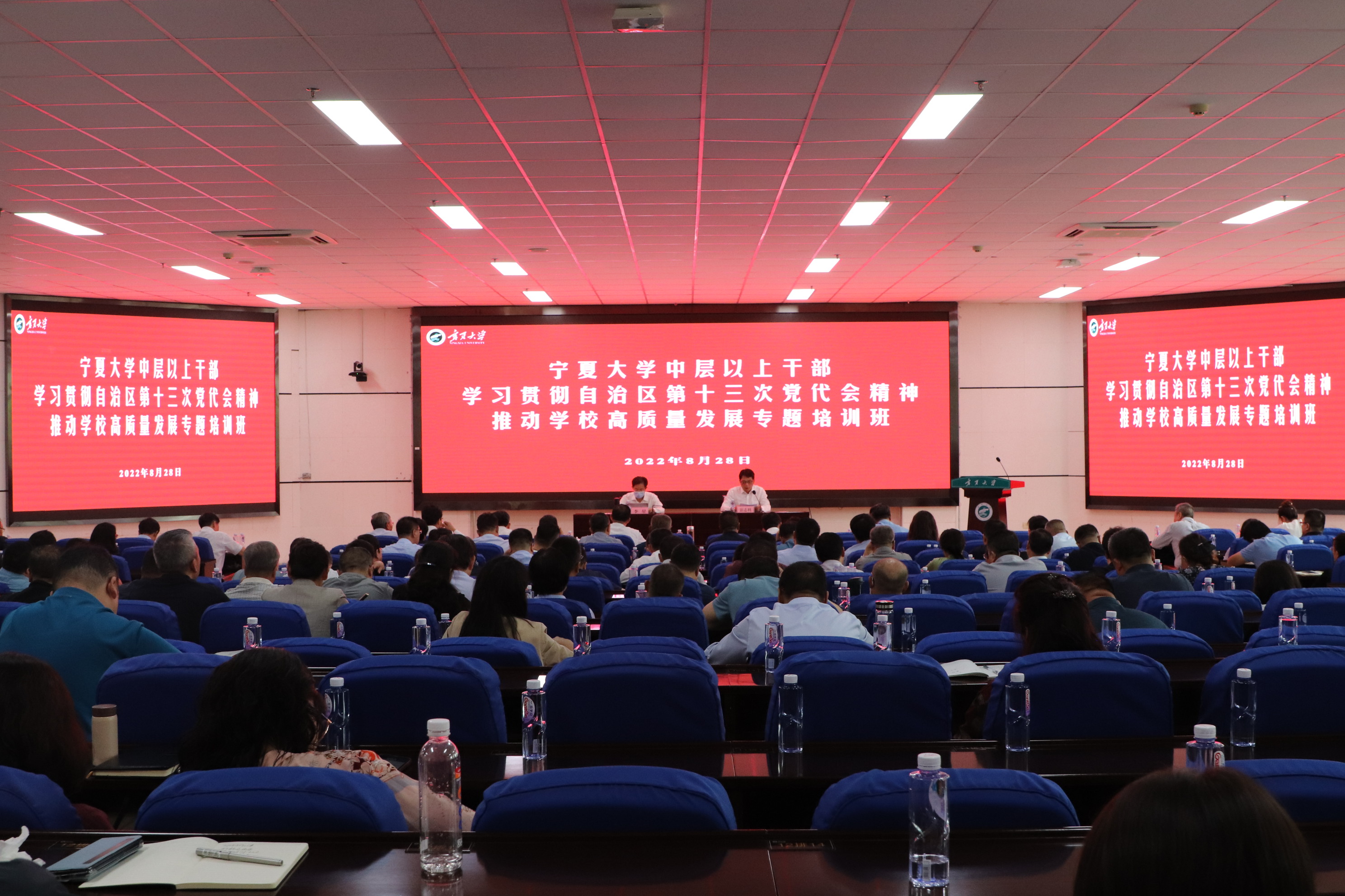 学校分别于2022年春季学期、秋季学期开学前夕举办beat365唯一官方网站中层领导干部学习贯彻党的十九届六中全会、自治区第十三次党代会精神推进学校高质量发展专题培训班,通过自主学习、集中培训、辅导讲座、专题研讨、部署工作等,将理论学习与实际工作紧密结合,在实际工作中检验学习成效。党的二十大胜利召开后,校党委始终以高度的政治责任感,深入学习宣传贯彻党的二十大精神,广泛开展党的二十大和习近平总书记视察宁夏重要讲话指示批示精神“大学习、大讨论、大宣传、大实践”活动,确保第一时间传达学习,迅速反应抓好贯彻,扎扎实实推动落实,在入脑入心、走深走实、见行见效上持续用力,把全校的智慧和力量凝聚到党的二十大报告关于教育的新思想新战略新要求上来。通过在学习研讨上用力,进一步凝聚思想共识破解发展难题;在宣传阐释上着力,进一步凝聚团结之力营造浓厚氛围;在实践实干上发力,进一步凝聚改革之效开创高质量发展新篇。全校上下持续掀起学习宣传贯彻党的二十大精神的热潮,坚持与推进教育教学、管理服务、疫情防控工作紧密结合,与学校综合改革和高质量发展深度融合,以学促干提质效、以干践行促落实,推动学校各项工作行稳致远。