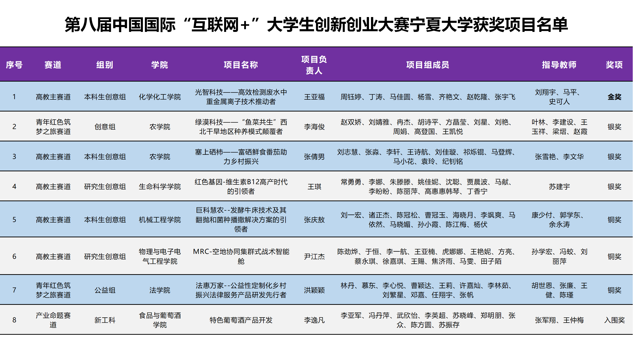 新增获批8个国家级一流本科专业建设点、6个自治区级一流本科专业建设点,获批自治区课程思政示范课程6门,本科教育实现习近平新时代中国特色社会主义思想概论课、“四史”教育课全覆盖。立项获批人工智能教育应用、智慧水利、数字化创新创业管理、网络安全、现代生物技术、环境与健康、体育教育(小学教育方向)等7个微专业,42门课程入选国家智慧教育公共服务平台,实施100余项研究生教育改革创新与实践项目。高质高效完成化学、学前教育、生物科学、英语、物理学、历史学、地理科学7个师范专业认证工作。举办首届青年教师教学基本技能展示活动、第二届教师教学创新大赛,促进青年教师相互交流学习和成长进步。成功入选首批国家级创新创业学院、创新创业教育实践基地建设单位,大学生心理健康教育指导中心获评全区高校心理健康教育示范中心。在“建行杯”第八届宁夏“互联网+”大学生创新创业大赛总决赛中获得9金8银15铜,在第八届中国国际“互联网+”大学生创新创业大赛中获得1金3银3铜、产业赛道入围1项的佳绩。