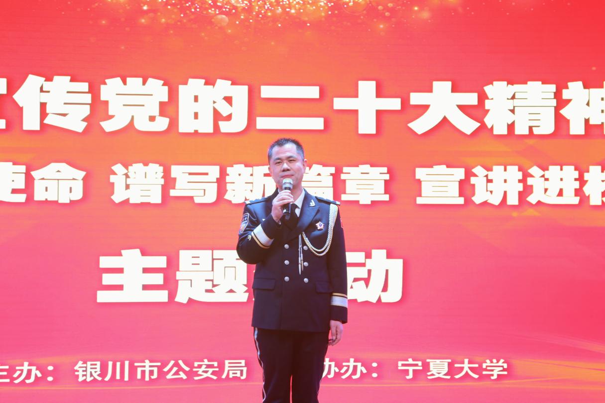 据悉,银川市公安局党的二十大精神宣讲团将通过本次活动向beat365唯一官方网站、金凤区彩虹湾社区、宁夏西部光彩职业技能学院、银川市消防救援支队等单位宣讲党的二十大精神、党的民族理论政策和民族常识,讴歌中国共产党的丰功伟绩,抒发爱党情怀和爱国情操,讲述新时代人民警察爱岗敬业、服务群众的先进事迹,切实推动党的二十大精神走进基层、走进群众。