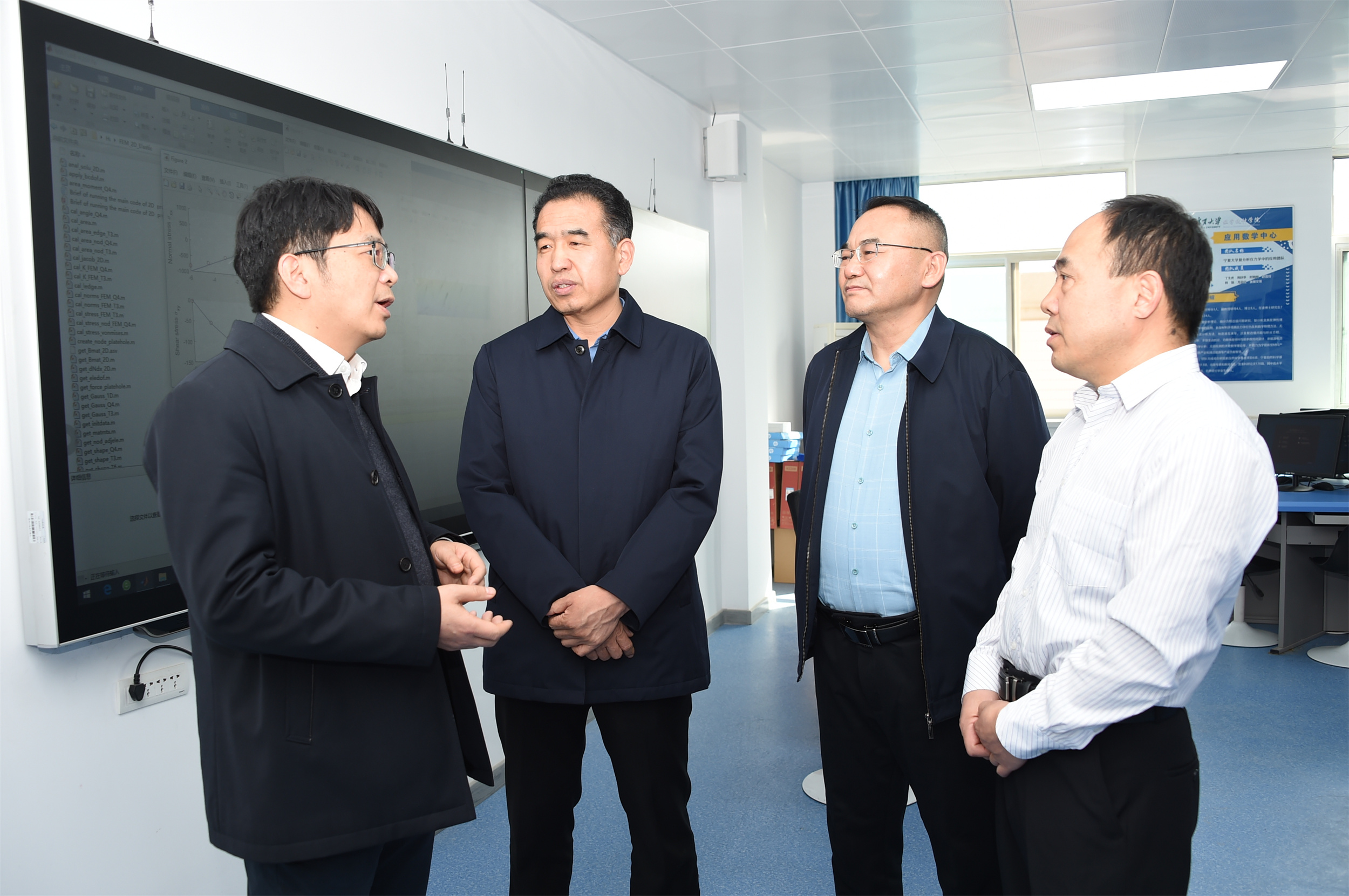 【beat365唯一官方网站新闻中心讯 龚旭峰/文、图】3月6日,自治区科学技术厅厅长徐龙、副厅长桑长清一行调研beat365官网科技创新工作。校党委副书记、校长彭志科,学术副校长、数学统计学院院长王青云,校长助理、材料与新能源学院院长夏明许陪同调研。