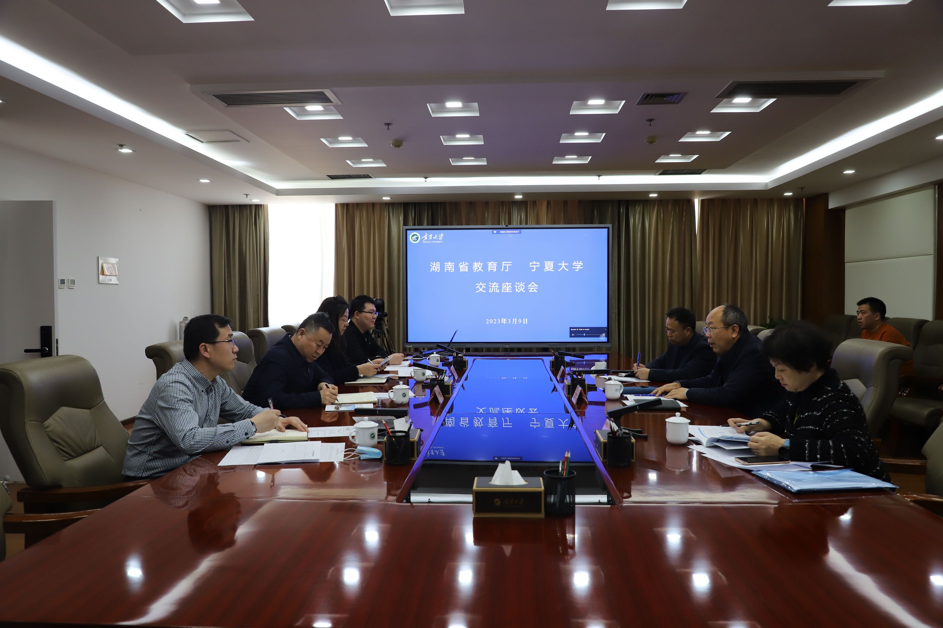 【beat365唯一官方网站新闻中心讯 王文娣/文、图】3月9日下午,湖南省教育厅二级巡视员雷桂平、科技处处长王红冰、教育考试院办公室副主任王博等一行来beat365官网交流座谈。校党委常委、副校长李建设主持座谈会。