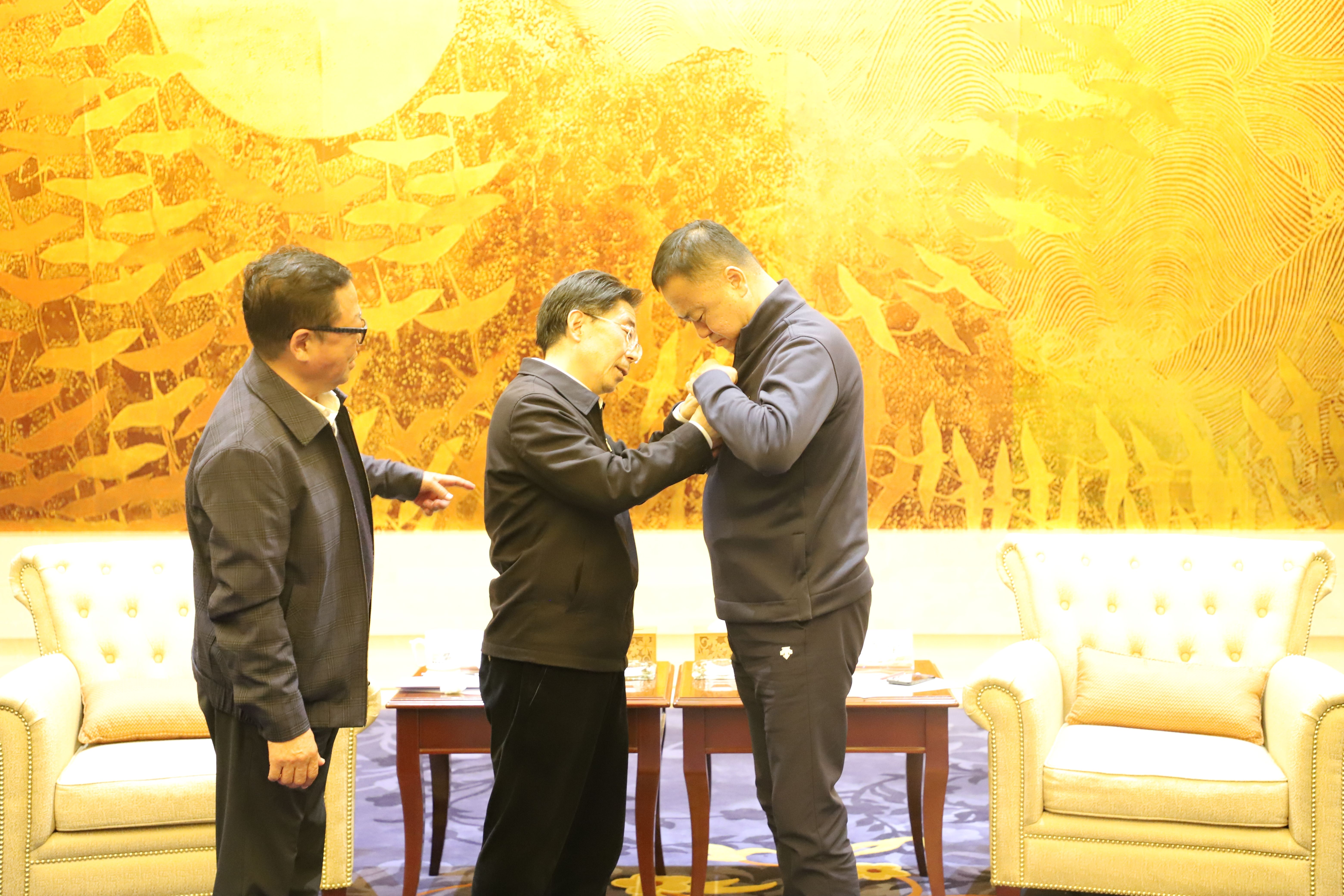 座谈会上,李星还为党彦宝颁发了荣誉校友牌匾,并佩戴校徽。