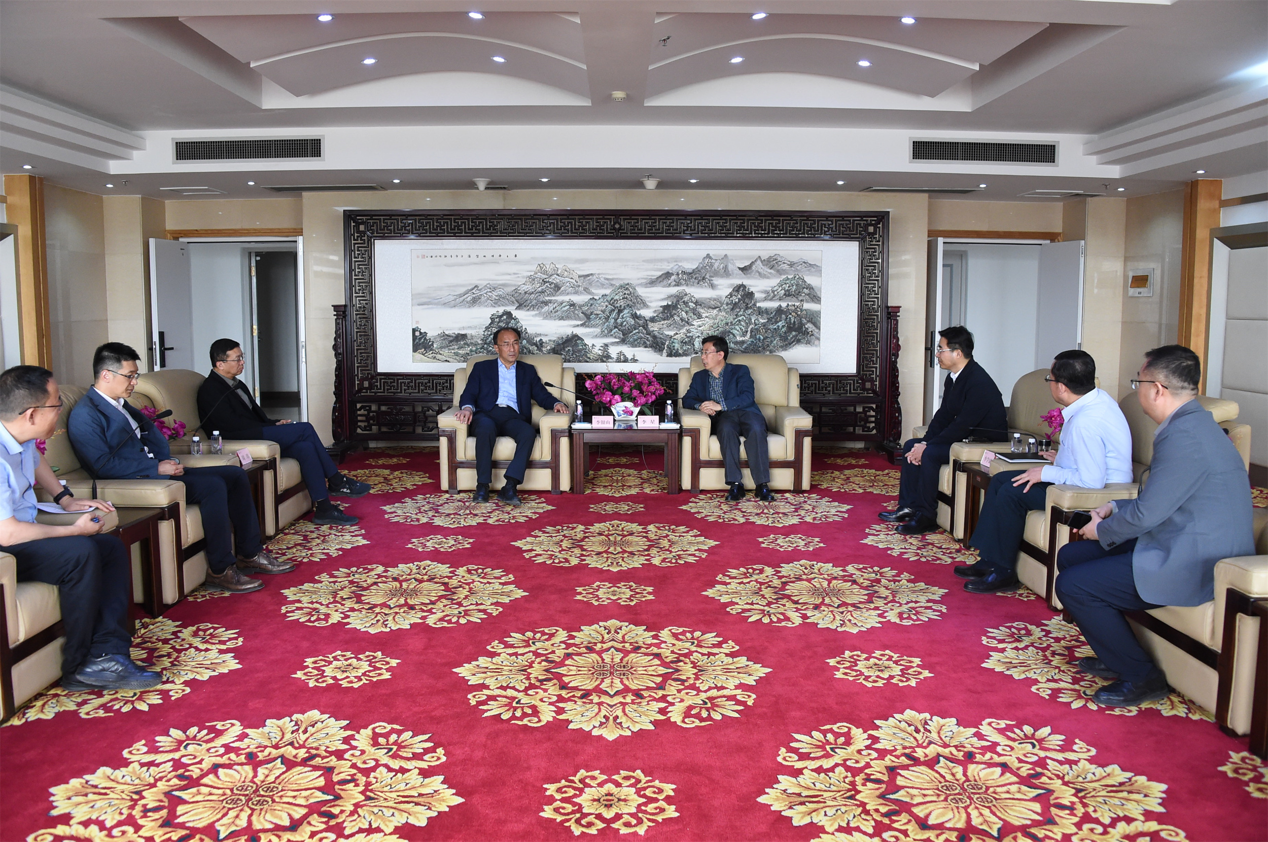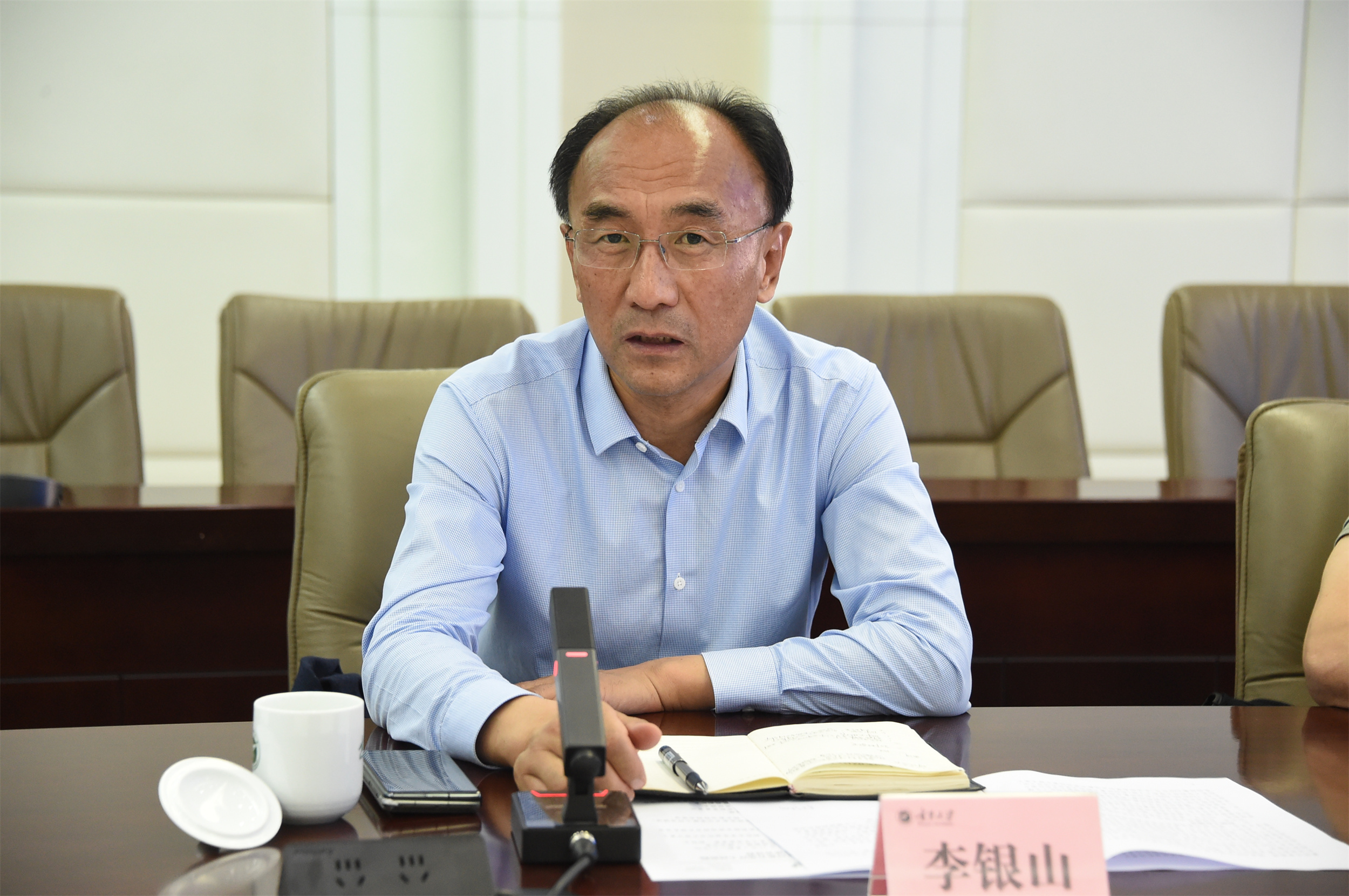 会前,校党委书记李星在德勤楼12楼贵宾室热情会见了李银山、周玮一行。双方围绕合作事宜进行了亲切友好的交谈。