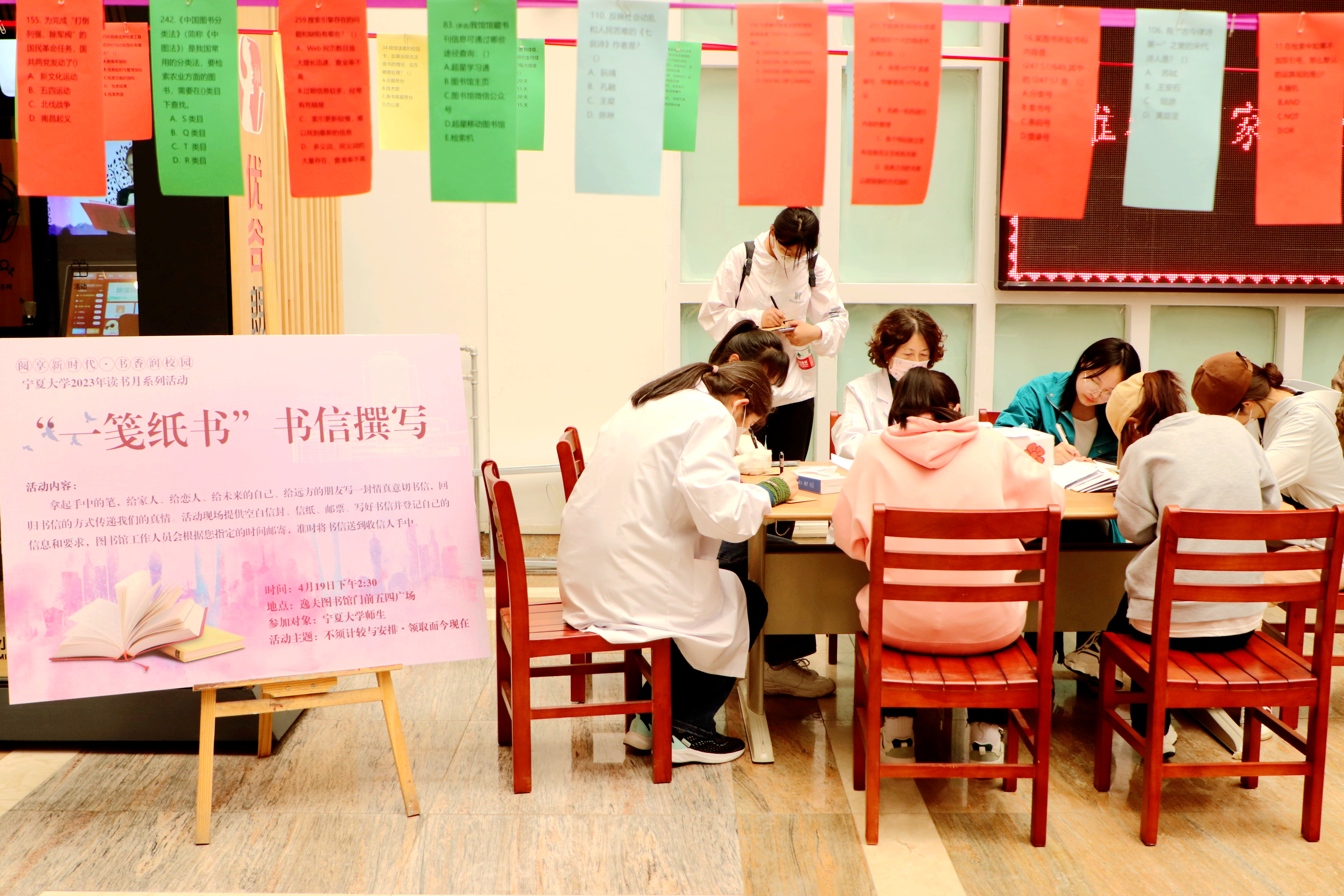 此次读书月系列活动开展了包括首次面向读者开放的图书馆藏古籍真本展、“数字悦读与‘宁’同行”数字资源宣传推广活动、“你选书,我买单”书展、“以书陶冶情操,用笔感悟人生”书法比赛、第九届“书香校园”征文比赛、“一笺纸书”书信撰写等多项重点读书文化活动。