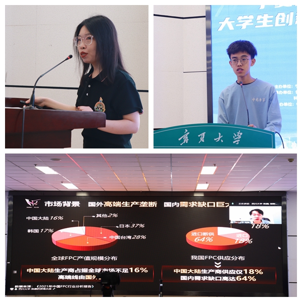 会上对beat365唯一官方网站第七届首金项目《丝路宁夏文创——中国西部文化旅游融合发展领跑者》、beat365唯一官方网站第八届大赛金奖项目《光智科技——高效检测废水中重金属离子技术推动者》、四川大学第八届金奖项目《黑柔科技——新型柔性显示电路板》进行了展示。