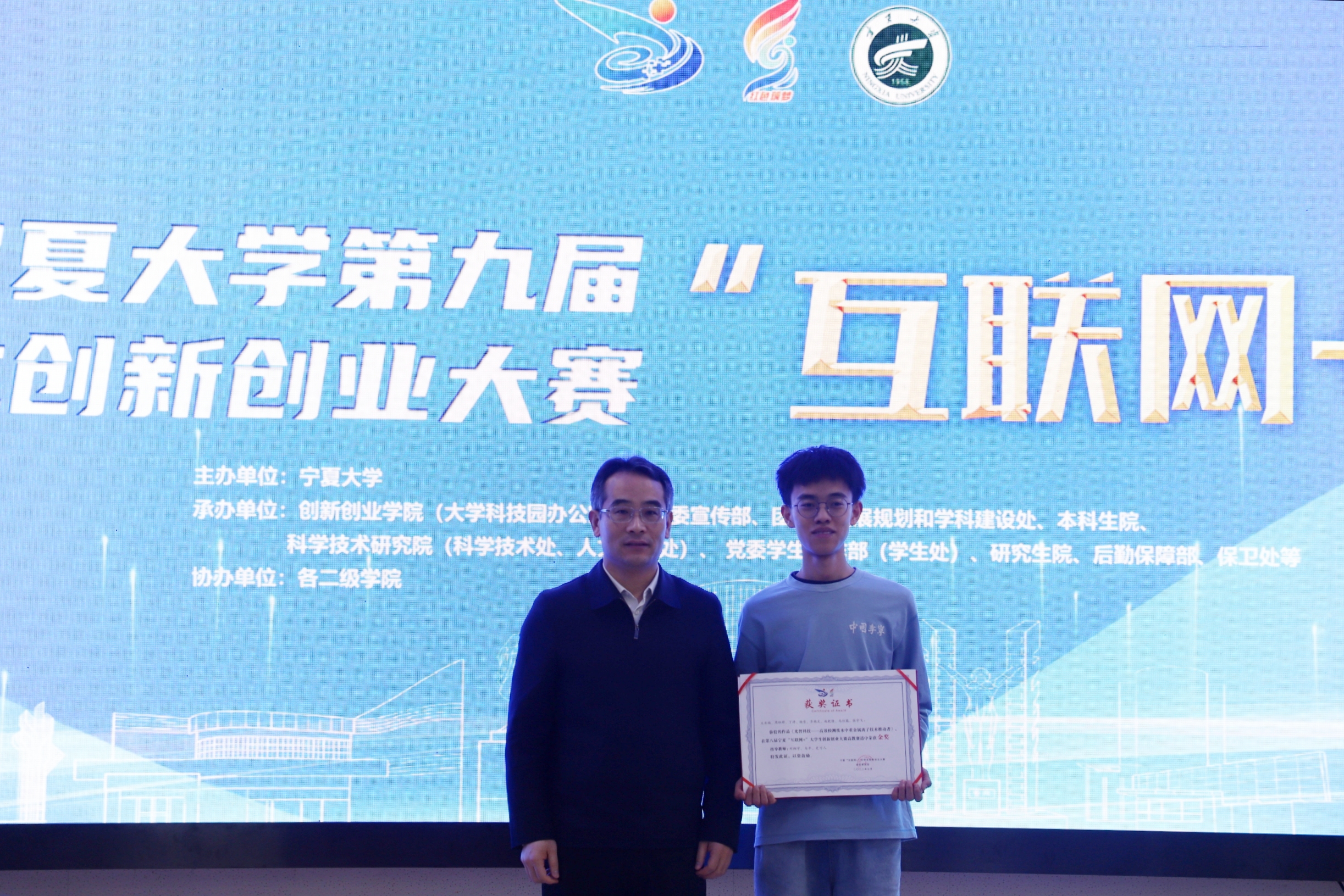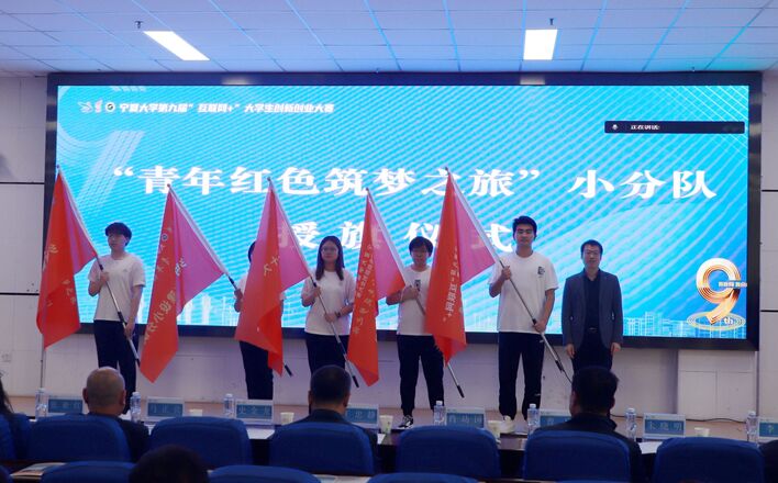 史金龙为第八届大赛金奖项目颁发获奖证书,王忠静为第八届大赛先进集体单位颁奖,党委学生工作部部长、学生处处长马正亮为第八届大赛优秀组织单位颁奖,团委书记肖功国为本届大赛“青年红色筑梦之旅”小分队授旗。启动仪式上还发布了beat365唯一官方网站创新创业学院院歌暨beat365唯一官方网站“互联网+”大学生创新创业大赛主题曲。