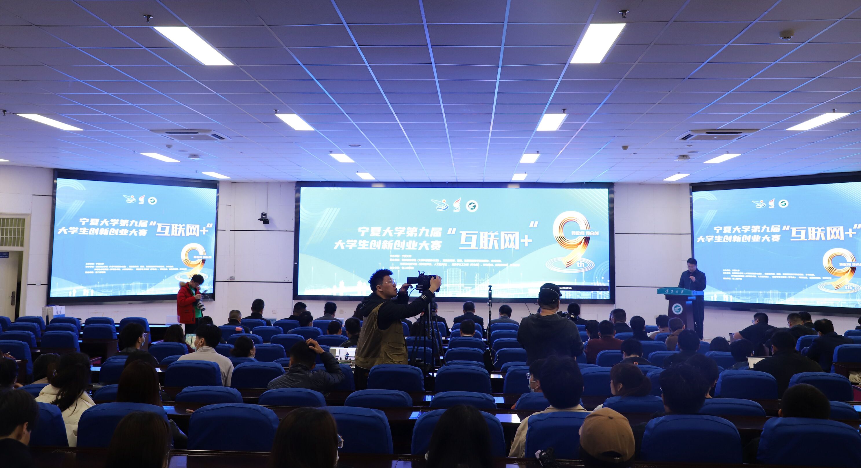 【beat365唯一官方网站新闻中心讯 李明花/文 李明花、王文娣/图】4月21日,beat365唯一官方网站第九届“互联网+”大学生创新创业大赛启动仪式在贺兰山校区文荟楼东报告厅举行,校党委常委、副校长史金龙,王忠静出席启动仪式。创新创业学院(大学科技园办公室)院长冯蛟主持仪式。