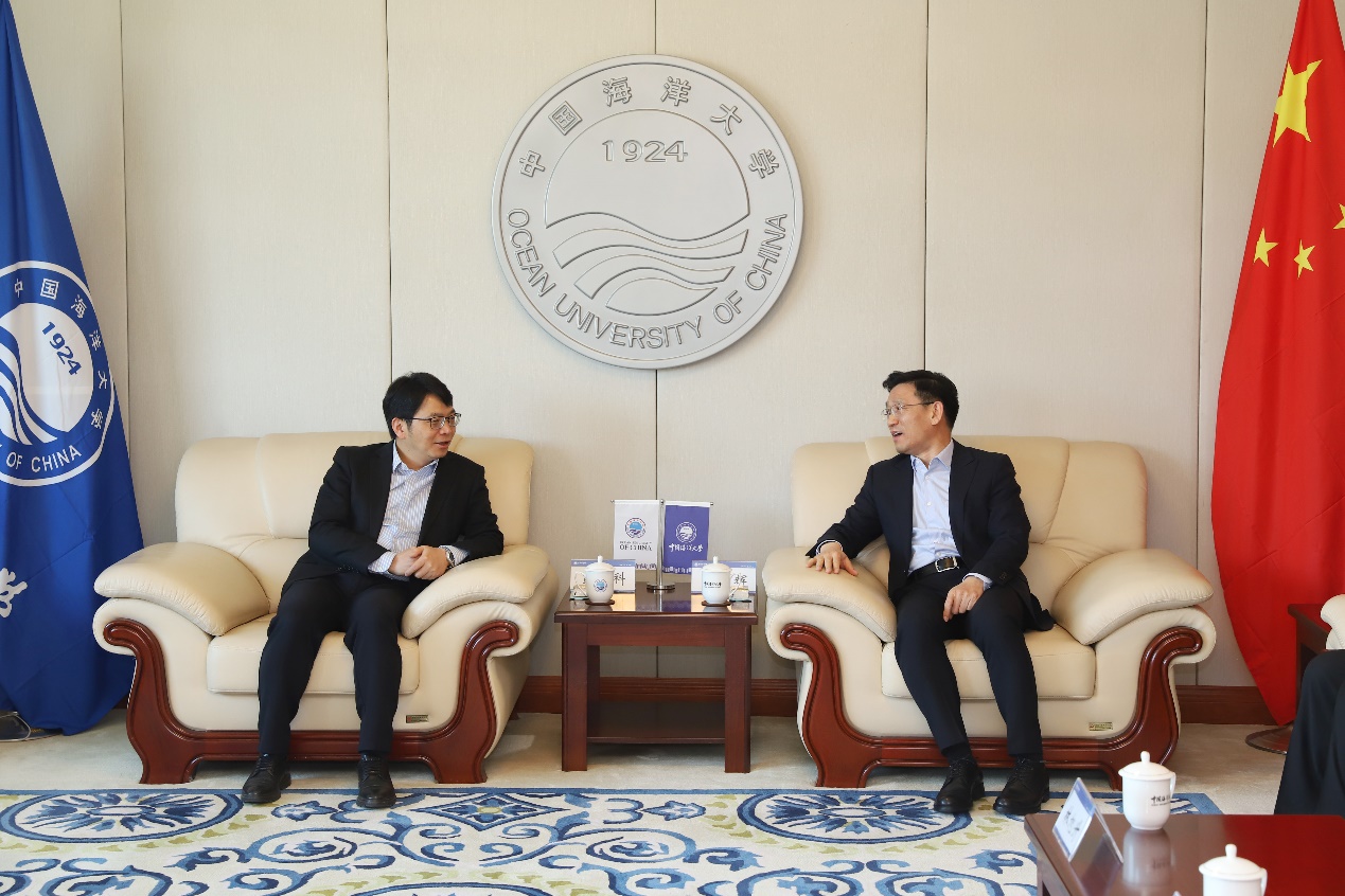 访问期间,彭志科一行拜会了中国海洋大学校党委书记田辉。田辉愉快地回忆起去年来宁调研访问的经历,简要介绍了中国海洋大学“六大推进”战略,对两校充分发挥特色优势,缔结合作交流关系,开展高质量合作表示肯定。