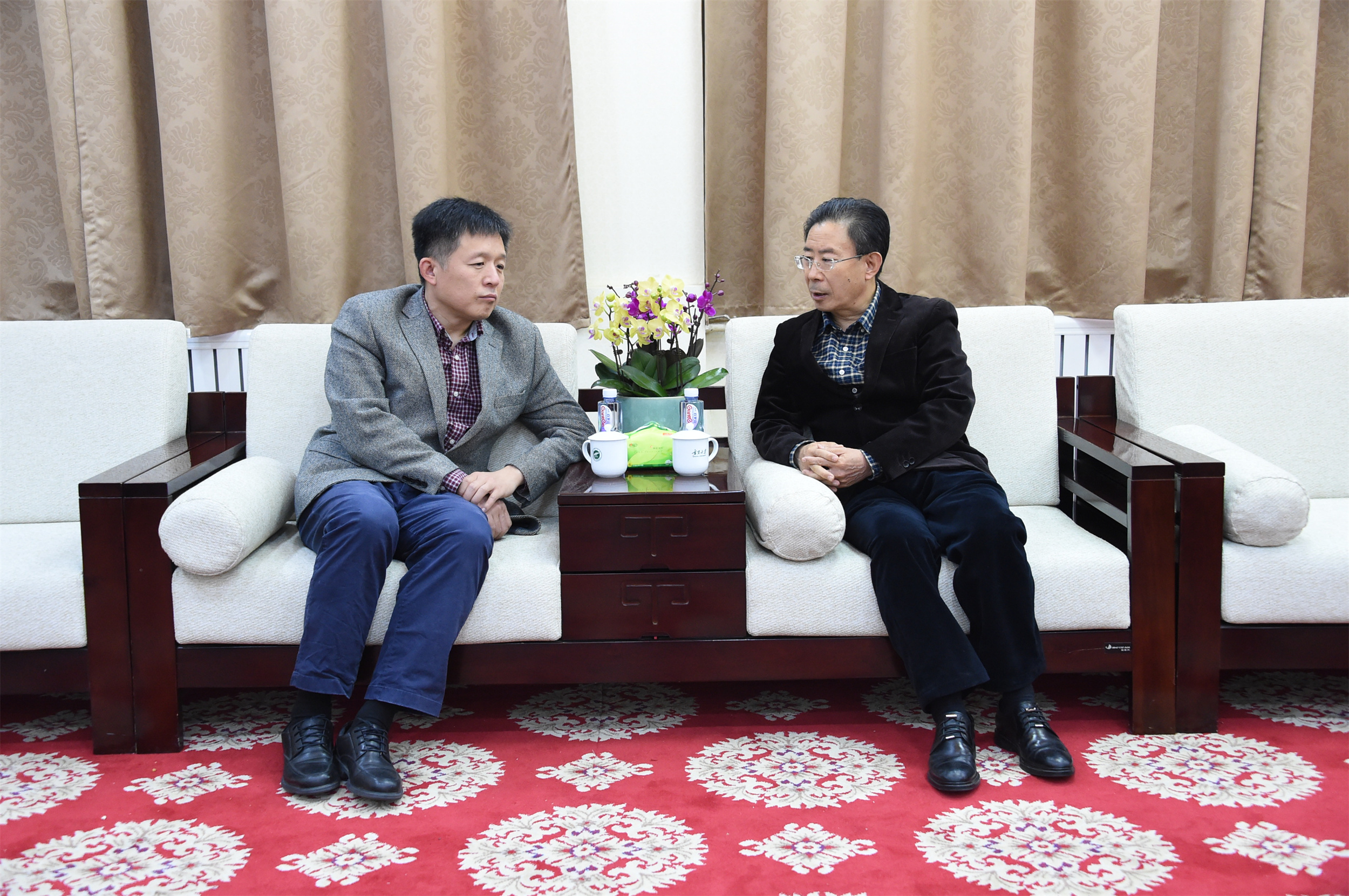 会前,校党委书记李星与黄大伟在大学生活动中心贵宾室进行了亲切友好的会谈。