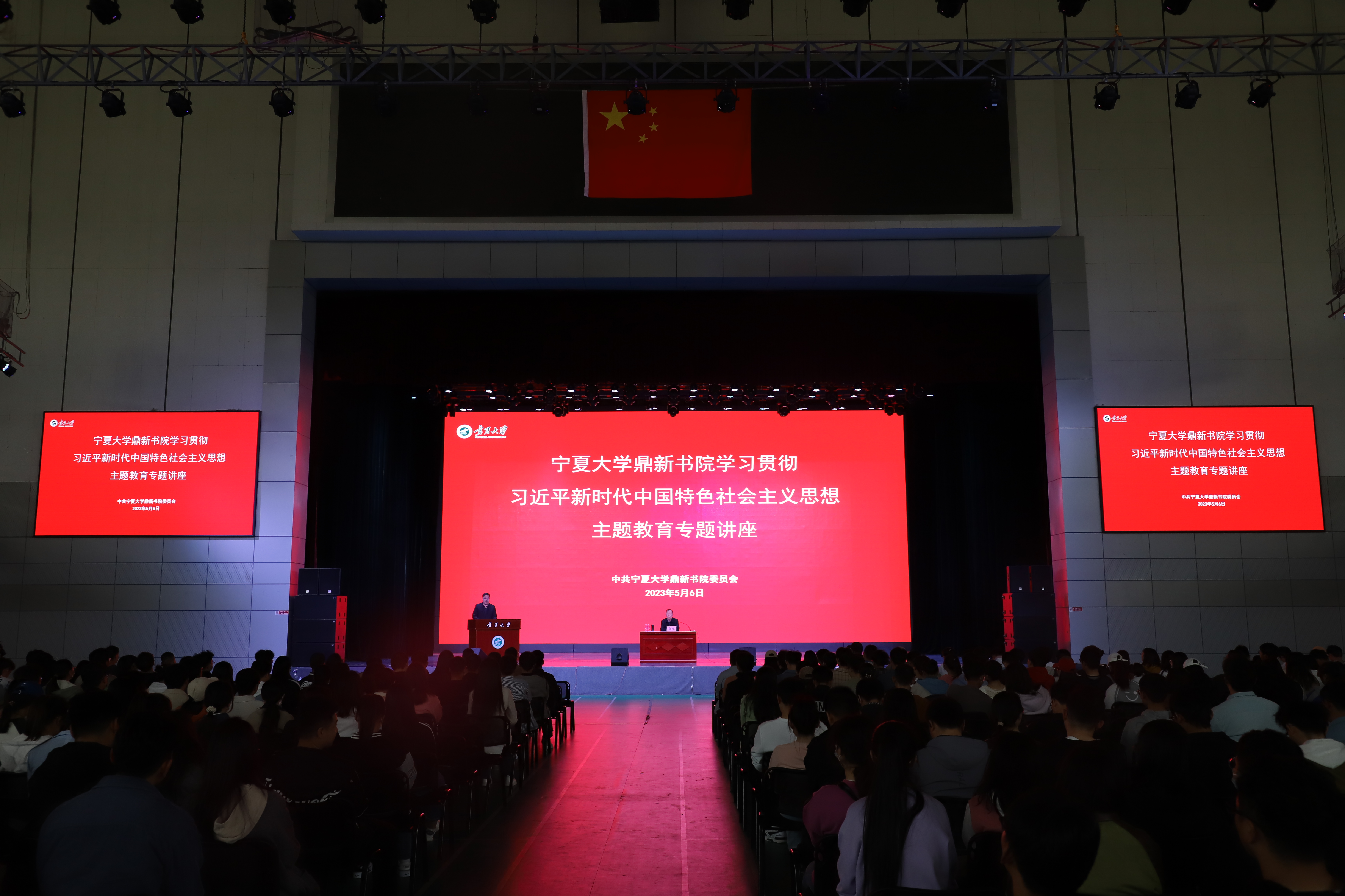 【beat365唯一官方网站新闻中心讯 王文娣/文 王文娣 学生记者:池聘/图】5月6日下午,“感恩总书记,奋进新征程”习近平新时代中国特色社会主义思想自治区宣讲团到beat365唯一官方网站开展宣讲,自治区党委讲师团团长张虎受邀在文萃校区大学生活动中心为鼎新书院师生党员和团学骨干600余人作“感恩总书记,奋进新征程”习近平新时代中国特色社会主义思想专题宣讲报告。鼎新书院党委书记、院长程胜利主持报告会。