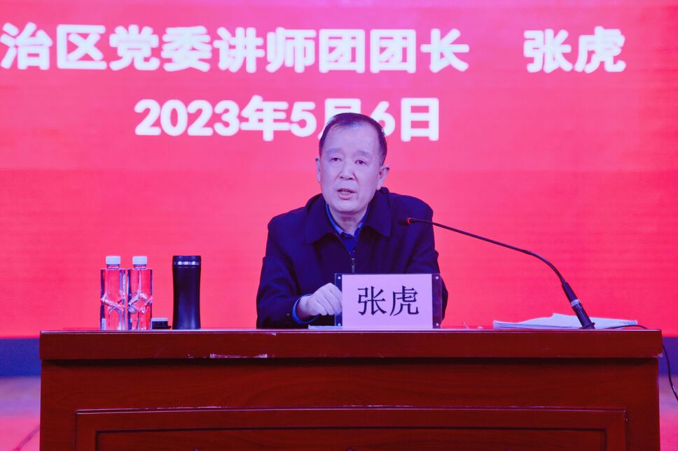 张虎结合不久前考察浙江的体会,从习近平总书记浙江足迹谈起,运用生动事例深入浅出地讲解习近平新时代中国特色社会主义思想的形成过程、主要内容、科学体系、精髓要义以及世界观、方法论和贯穿其中的立场观点方法,鼓励同学们要用哲学的高度去理解和把握习近平新时代中国特色社会主义思想的方方面面,引导青年学生要切实把学习贯彻习近平新时代中国特色社会主义思想内化于心、外化于行,把对习近平总书记视察宁夏重要讲话和重要指示批示精神的感恩之心,转化为全面建设社会主义现代化美丽新宁夏的实际行动,为宁夏大发展、快发展蓄蓬勃之力、树鸿鹄之志。