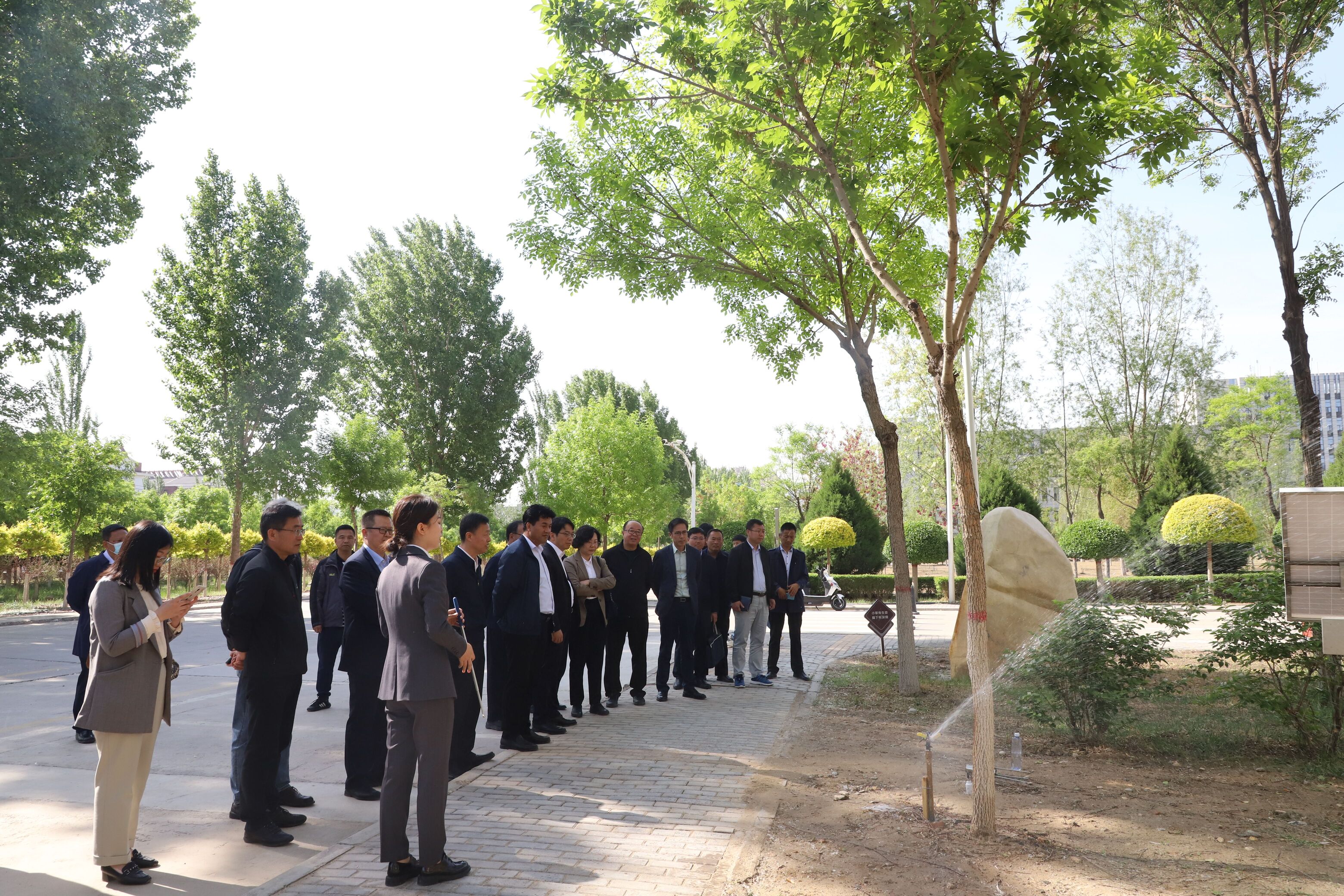 在现场观看完智能浇灌系统的运行演示后,调研组围绕beat365官网分布式污水资源化利用合同节水在运行过程、成本运算及如何持续发展等方面与相关负责人进行交流探讨。调研组就下一步节水工作提出明确要求,要进一步强化用水管理,加强节水技术改造,结合学校实际采用合同节水管理模式,因地制宜分布式进行污水资源化利用,充分利用再生水,实现校园用水效率的进一步提升,努力打造自治区级乃至全国高校水效领跑示范高校,助推宁夏及银川市深度节水、控水方案落实落地。