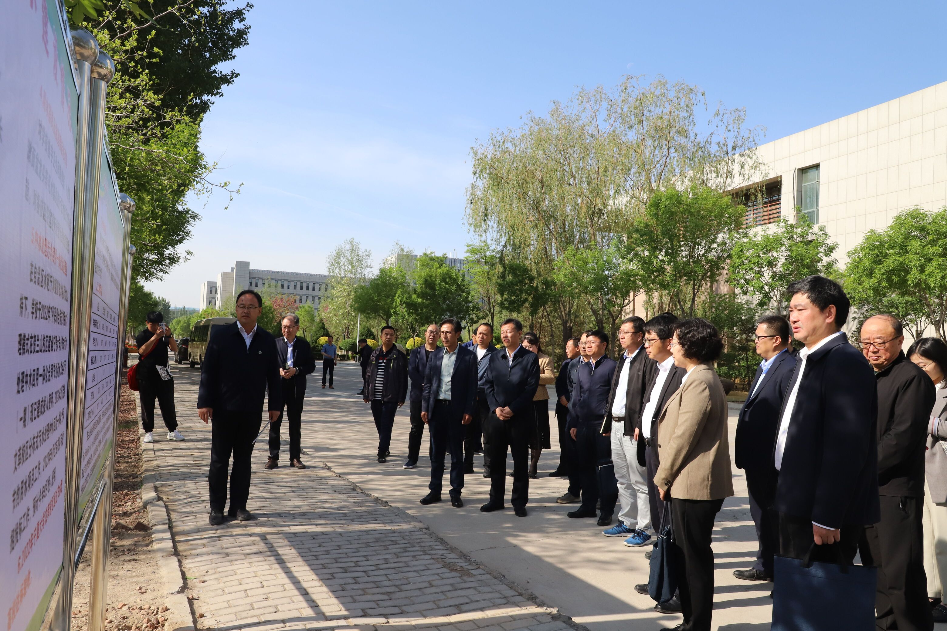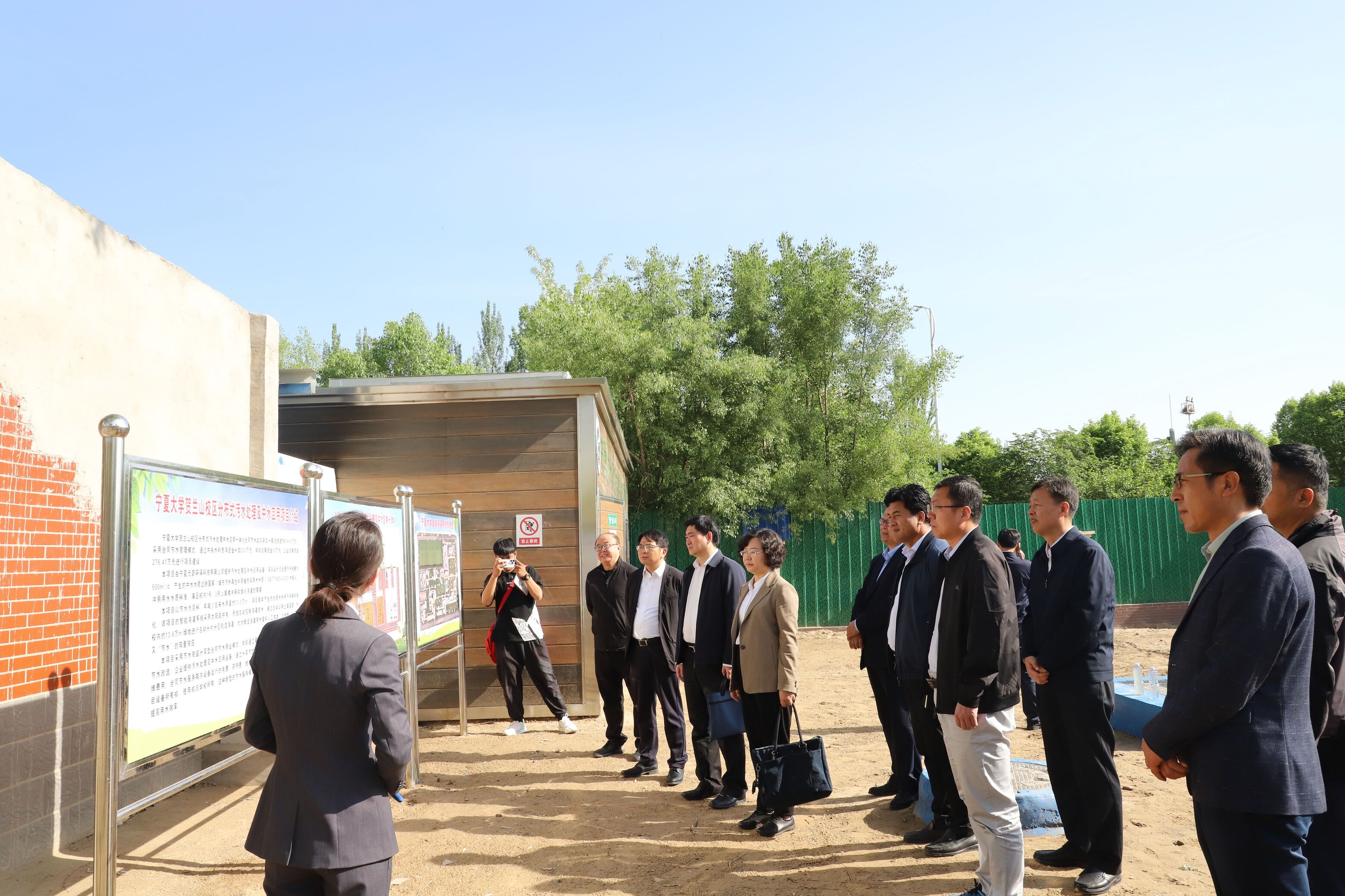 调研组前往beat365官网贺兰山校区分布式污水处理中水回用一体化合同节水试点项目设施现场,听取了基建处负责人对校园总体规划、校园用水定额及计划用水执行等情况的汇报,宁夏元蔚环保科技有限公司负责人对分布式污水资源化利用合同节水情况、beat365官网智能浇灌系统的运行等情况进行了介绍。
