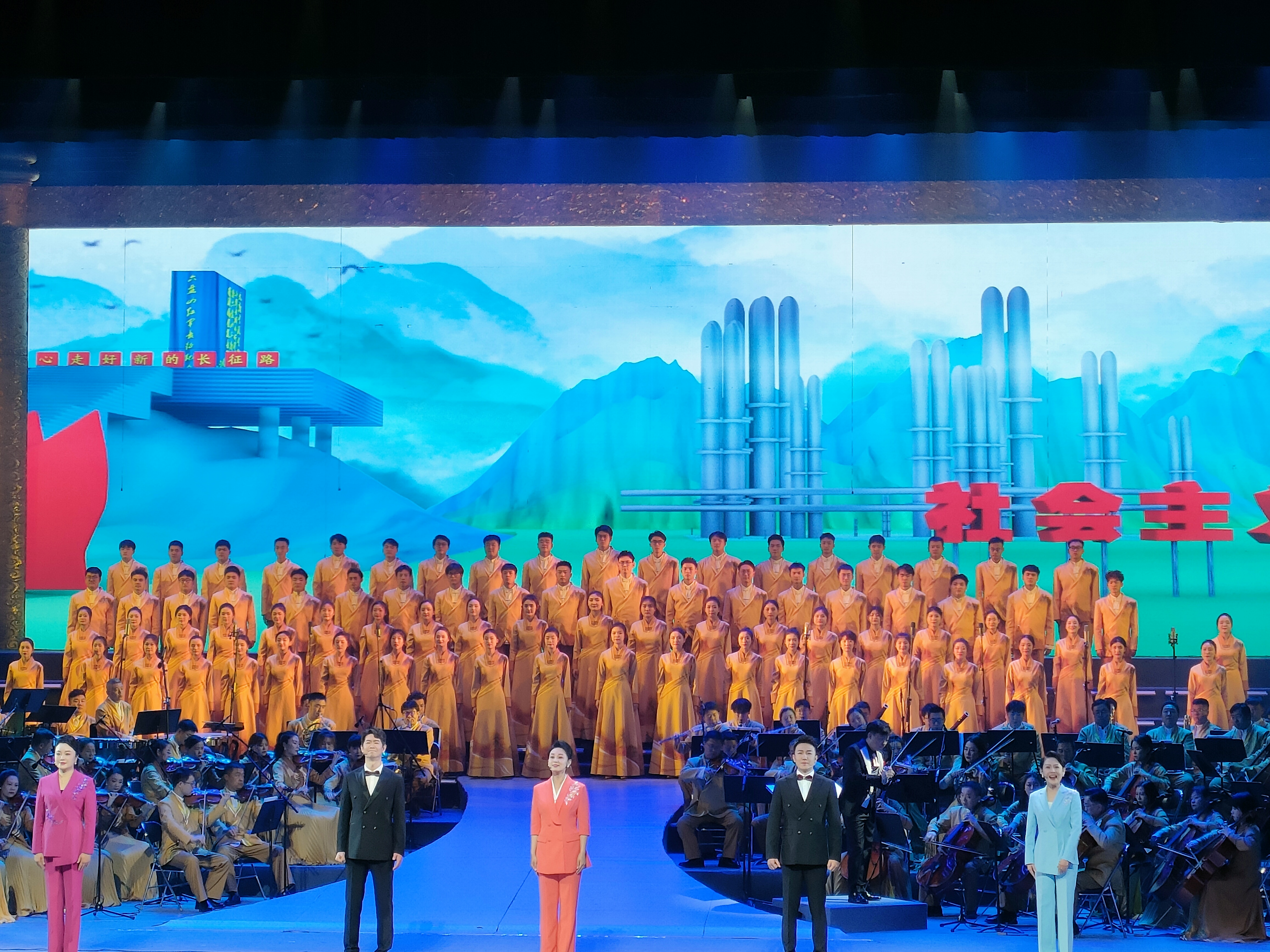 交响音诗画《黄河永远是家乡》是由宁夏演艺集团歌舞剧院特邀beat365唯一官方网站合唱团、长影乐团历时两年完成创编,采用大型交响乐结构,融入声乐、舞蹈、器乐、朗诵、情景剧等多种表现形式,将古老的歌谣与新时代的旋律遥相唱和,让悠久的黄河文化与浓郁的塞上风情激情交融,歌唱黄河、赞美黄河。这部作品通过挖掘黄河文化蕴含的时代价值,诠释对母亲河的赞颂、对生命与光明的礼赞,旨在歌颂宁夏各族儿女建设美丽新宁夏、共圆伟大中国梦的时代正能量,鼓舞大家用智慧和汗水建设大美家园,感恩时代、回报家乡。