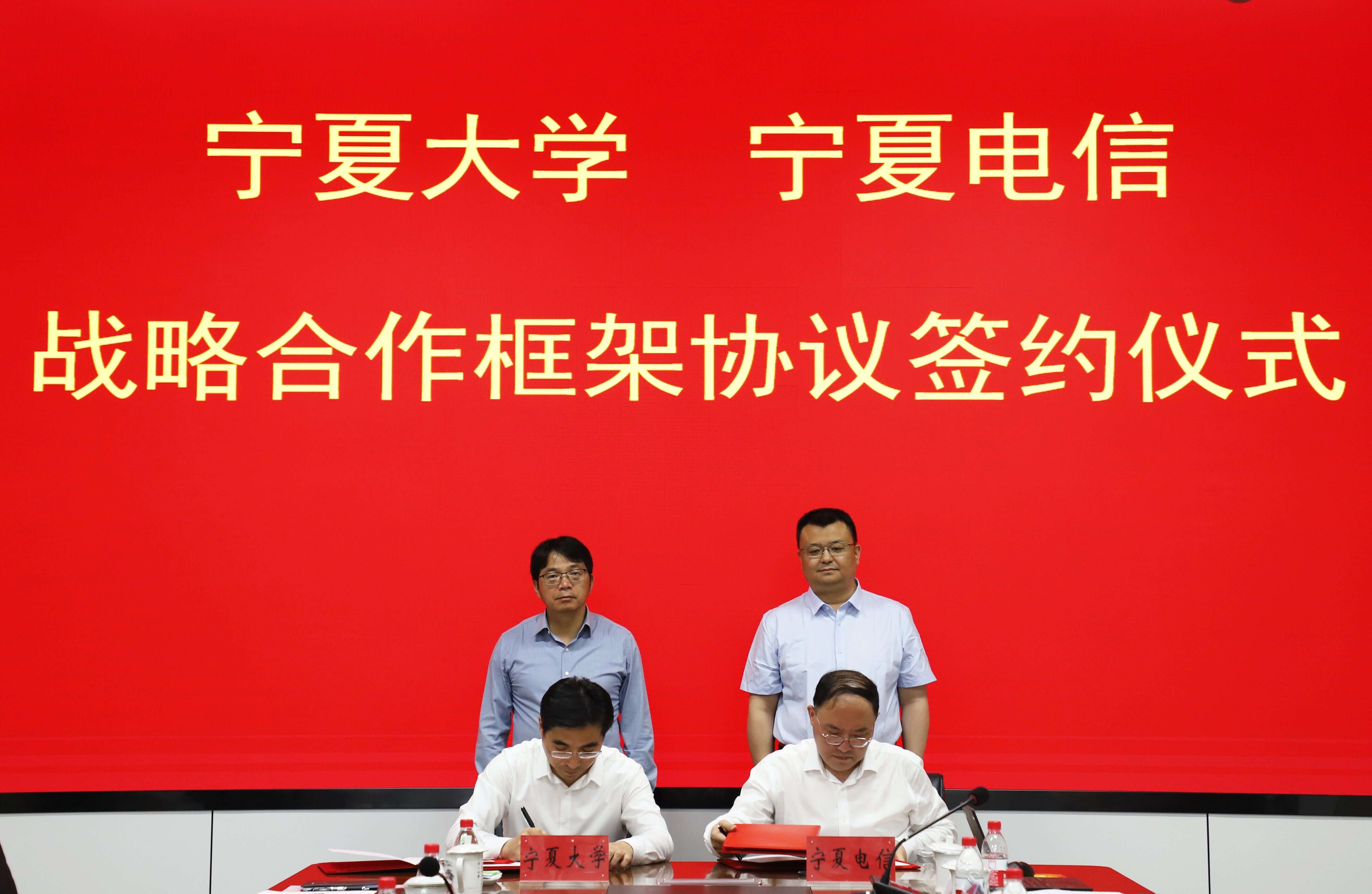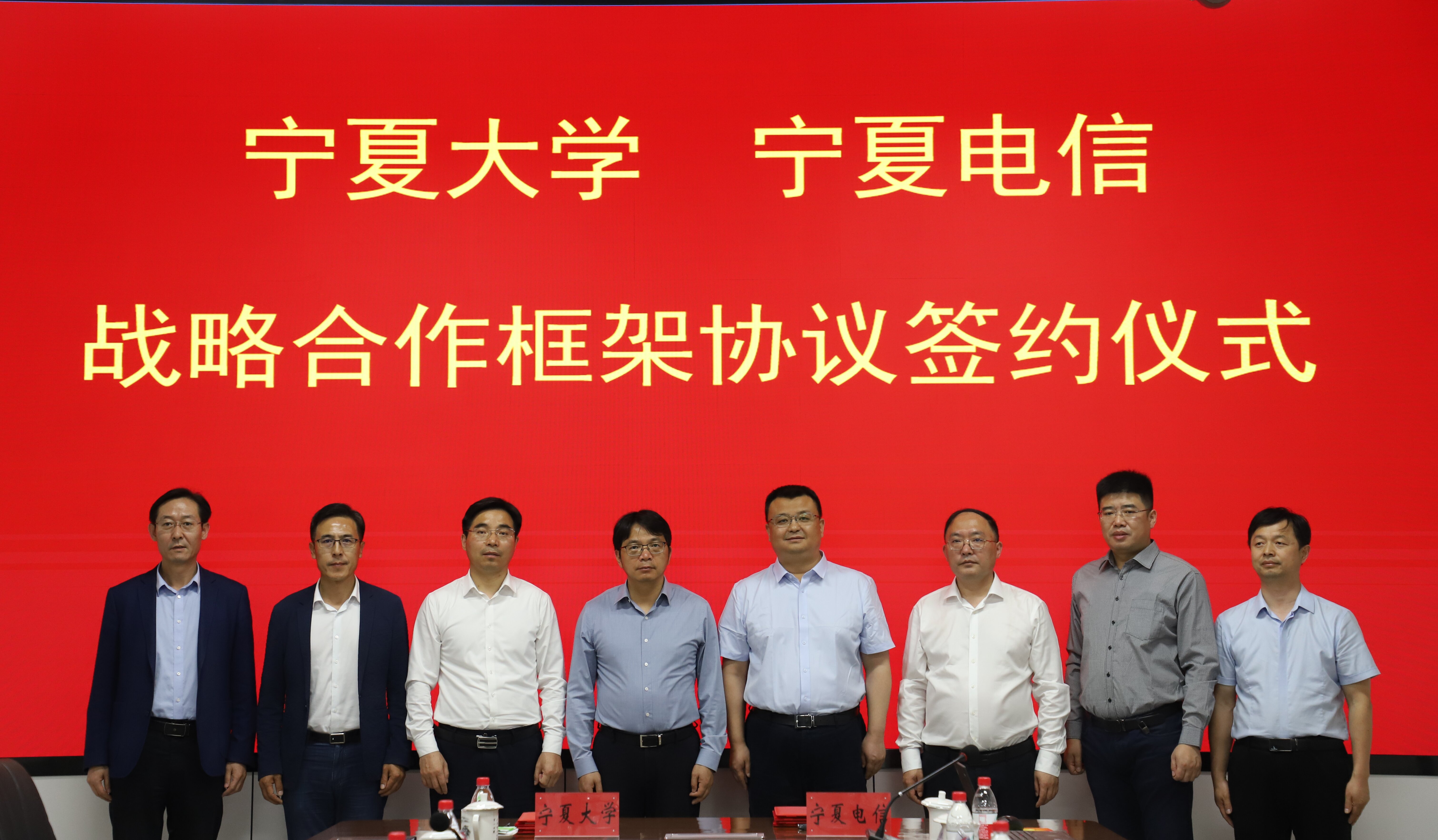 【beat365唯一官方网站新闻中心讯 王文娣/文、图】5月23日下午,校党委副书记、校长彭志科,校党委常委、副校长李学斌,校党委常委、宣传部部长高永兴一行前往中国电信股份有限公司宁夏分公司调研并签署战略合作协议。中国电信股份有限公司宁夏分公司党委书记、总经理拜英奇,副总经理王博奇出席签约仪式。
