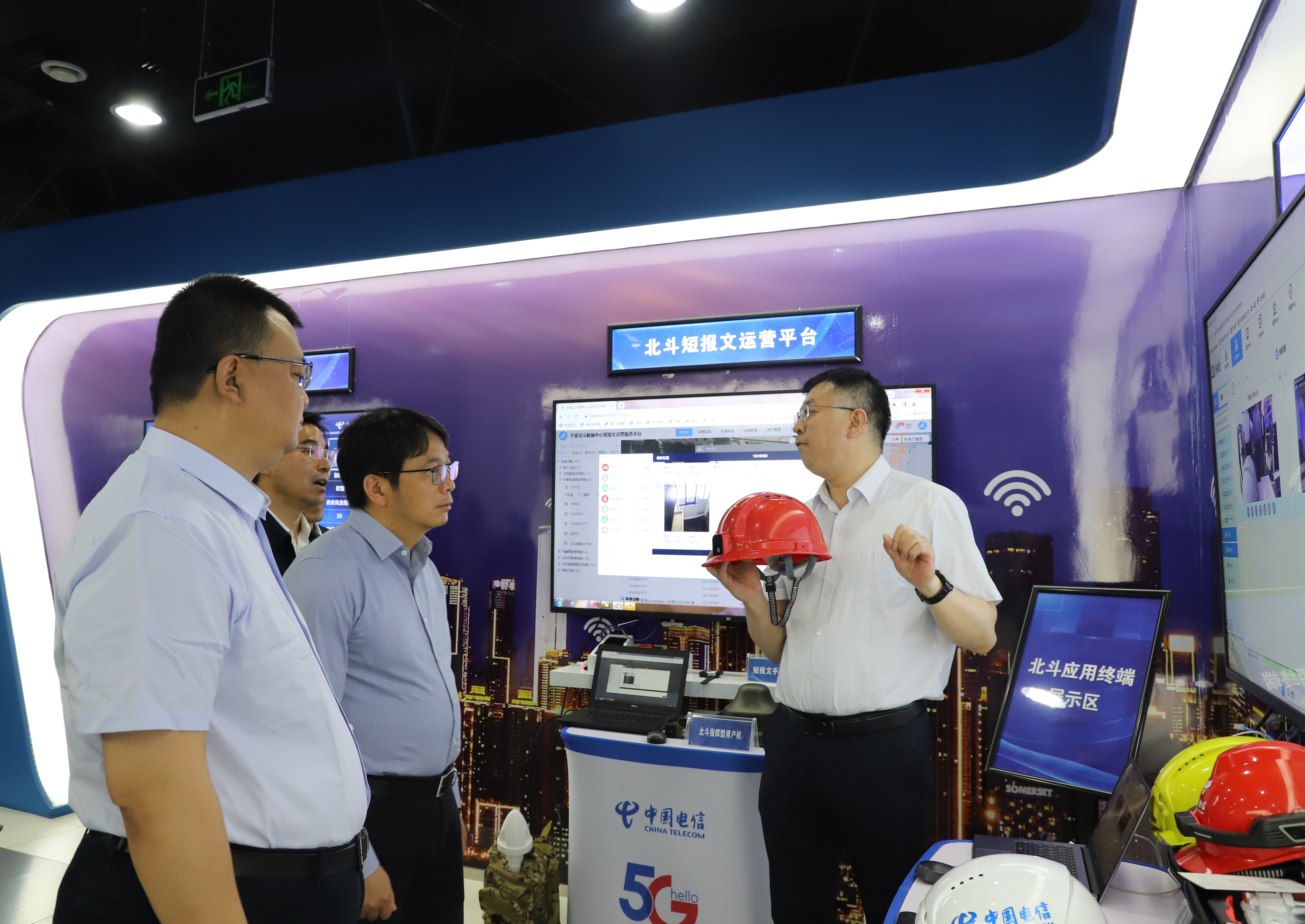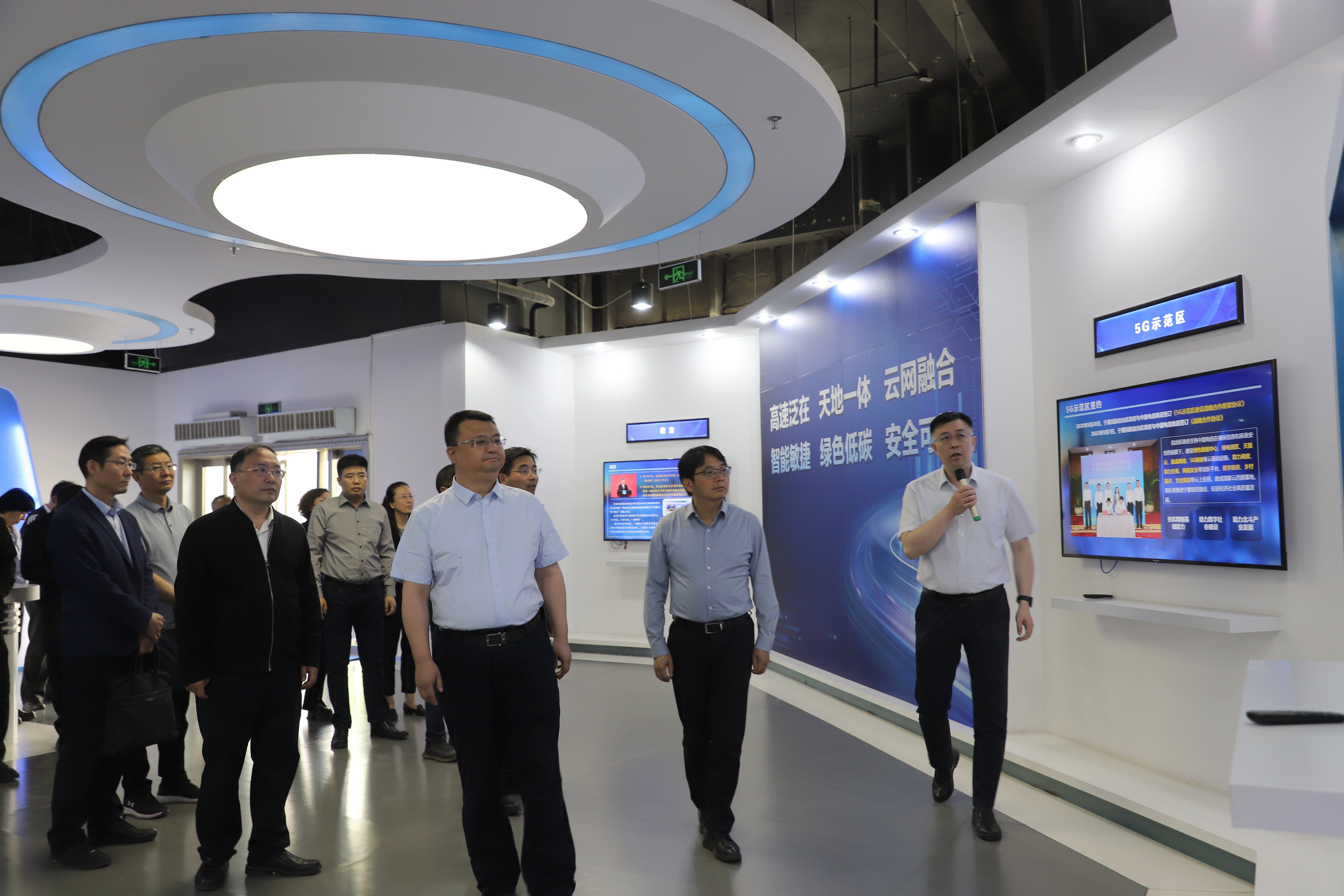 彭志科一行在拜英奇的陪同下参观了宁夏电信公司展厅,详细了解中国电信的5G+智慧应用、北斗系统、机器人、安全数字技术和产业应用成果等方面的成就。