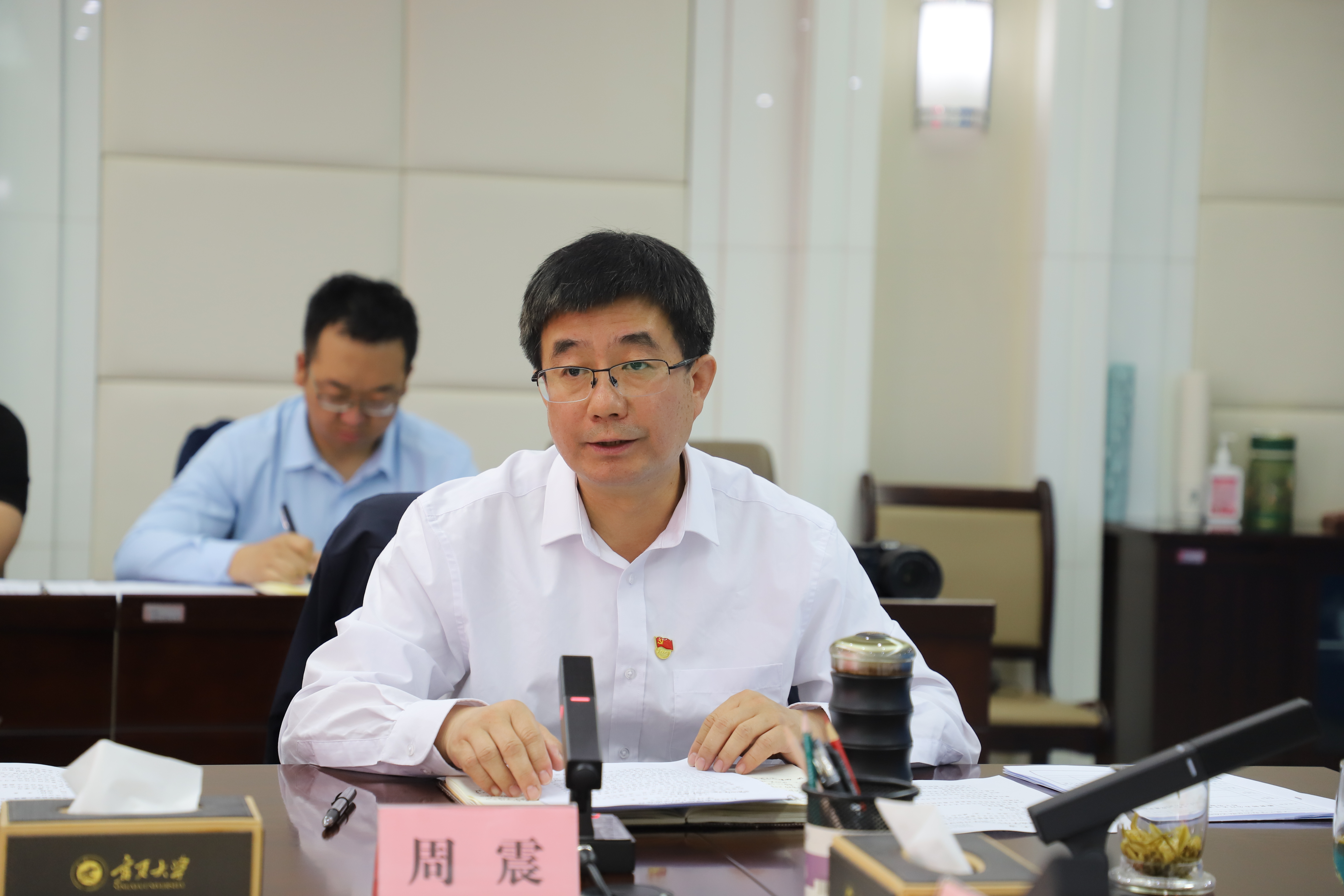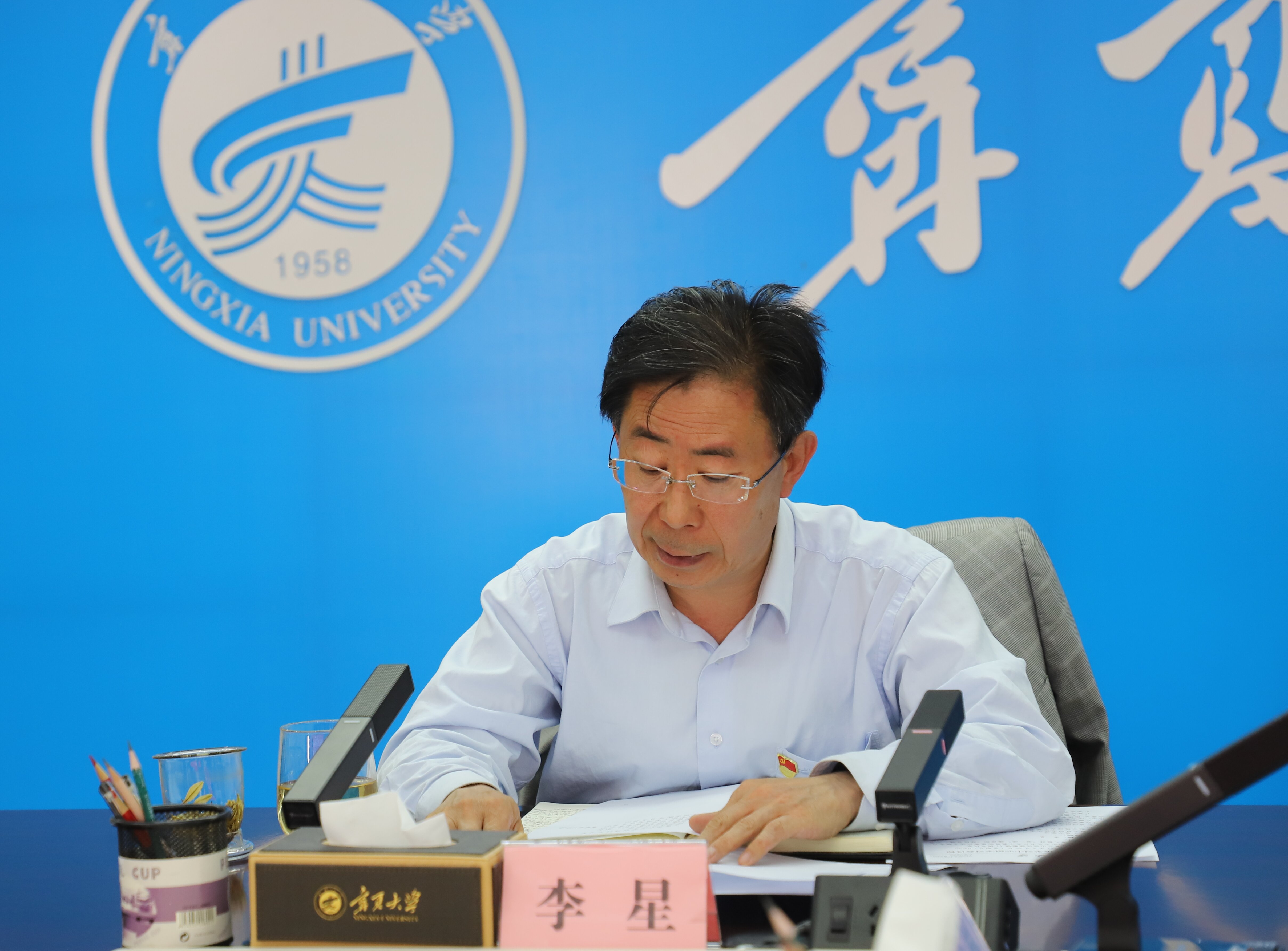 【beat365唯一官方网站新闻中心讯 王文娣/文、图】5月26日,beat365官网召开2023年校党委理论学习中心组第六次学习会,专题学习习近平总书记关于教育的重要论述,围绕学校深入推进“双一流”建设和“部区合建”开展交流研讨。自治区第九巡回指导组吴建武同志列席会议。会议由校党委书记李星主持。