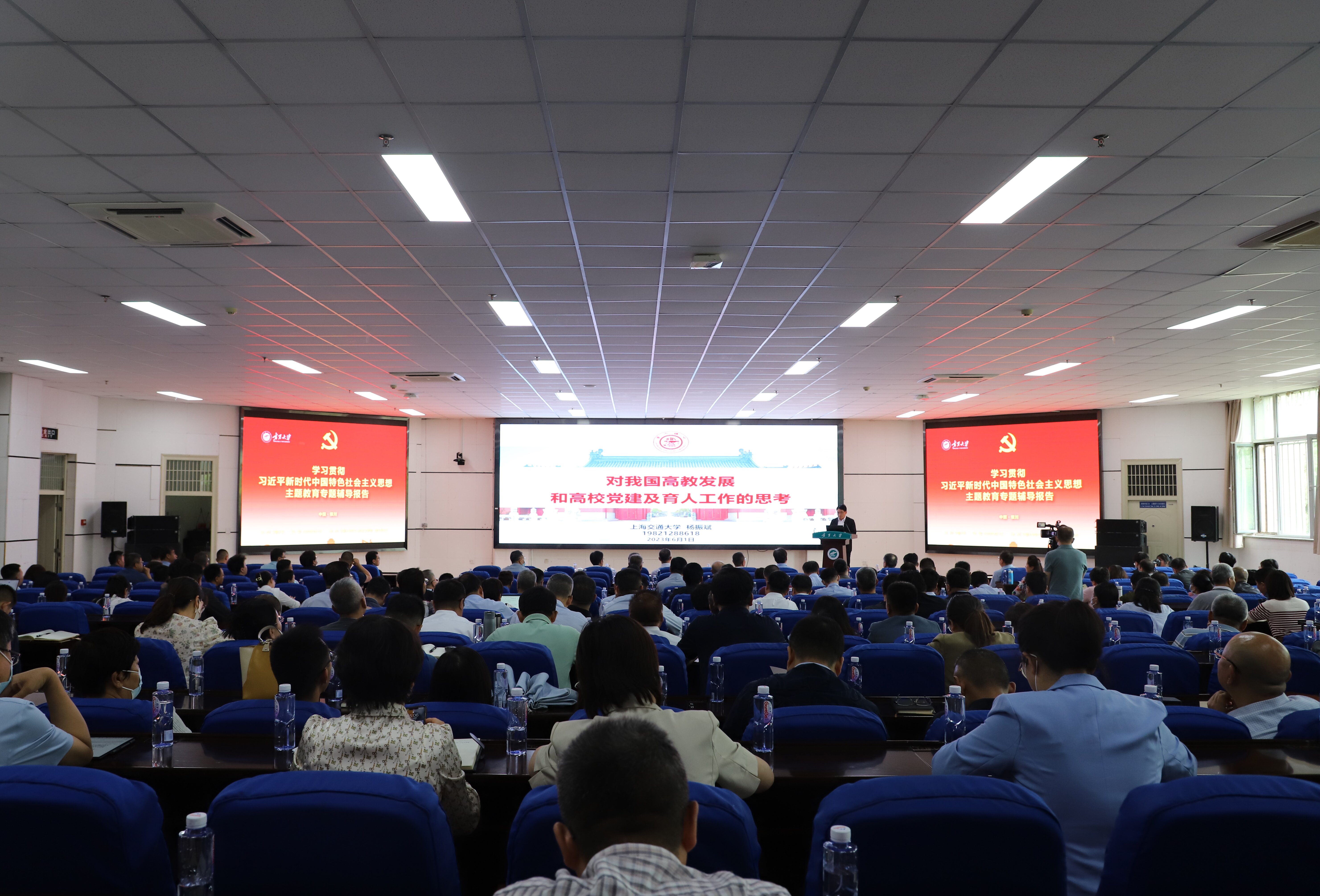 全体在校校领导、党委常委、厅级干部和全校副处级以上干部在现场聆听了报告。