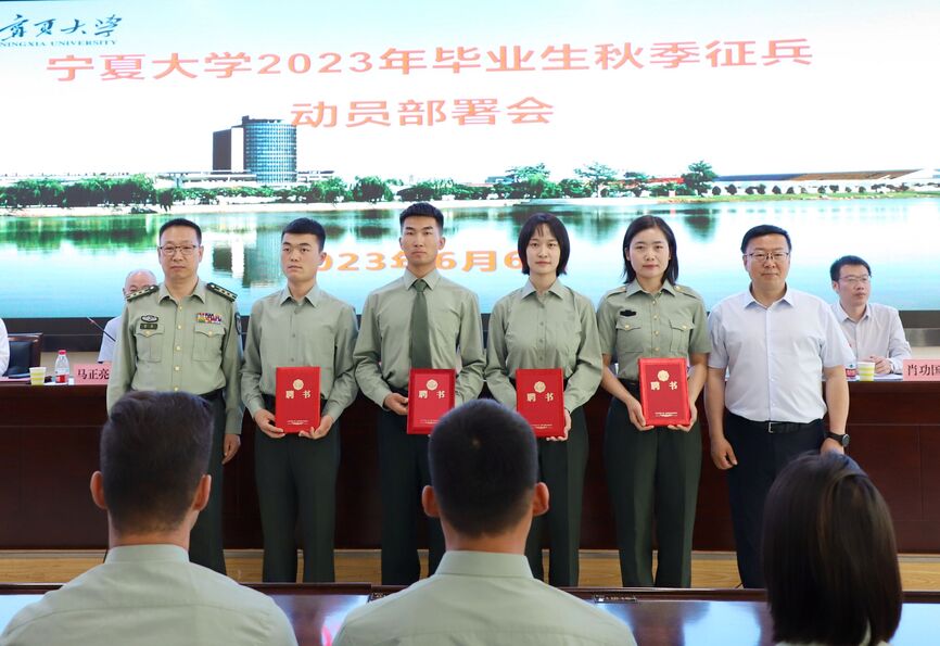 会上还宣读了《宁夏回族自治区高校大学生应征入伍激励政策实施办法》、校级征兵宣传员名单、2023年上半年退伍大学生名单,介绍了beat365官网征兵工作开展情况,并对2023年秋季毕业生征兵工作做了部署安排。