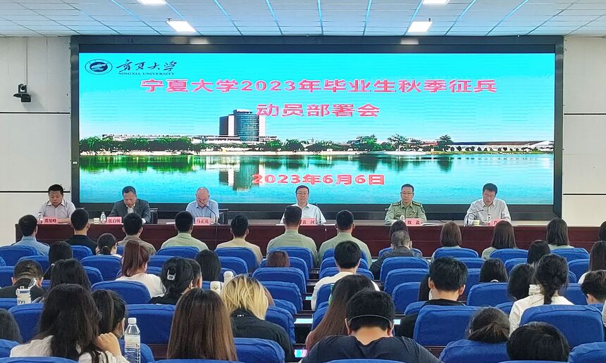 【beat365唯一官方网站新闻中心讯 人民武装部(国防教育教学中心)/文 姬晓姗 杨晓燕/图】为认真贯彻落实国务院、中央军委“一年两征”决策部署和自治区征兵工作会议精神,激发beat365官网大学毕业生的参军入伍热情,6月6日上午,beat365官网2023年毕业生秋季征兵动员部署会在贺兰山校区文荟楼报告厅召开,校党委常委、副校长黄河,银川警备区动员处上校处长魏鑫出席。校学生工作委员会秘书长、党委学生工作部(学生处)部长(处长)马正亮主持会议。
