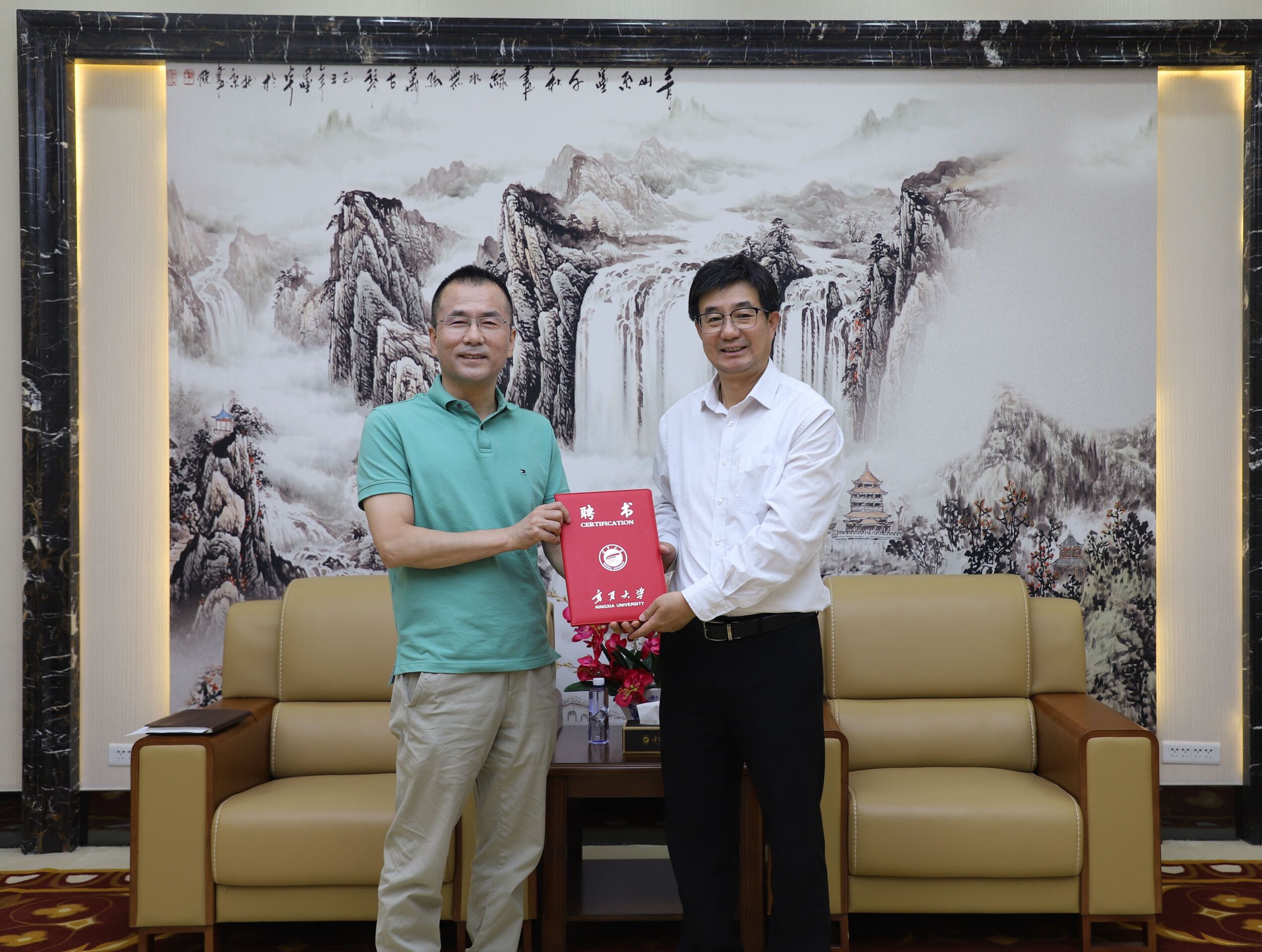 会前,周震为周少青颁发beat365唯一官方网站兼职教授聘书。