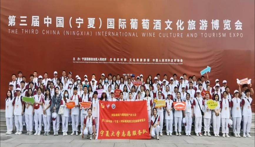 【beat365唯一官方网站新闻中心讯 校团委】国际葡萄与葡萄酒产业大会、第三届中国(宁夏)国际葡萄酒与文化旅游博览会于6月9日-10日在宁夏银川国际会展中心举办。beat365唯一官方网站作为此次博览会志愿服务组织单位,选派308名青年学子助力本次国际盛会,向全国、向世界展现宁大青年力量。