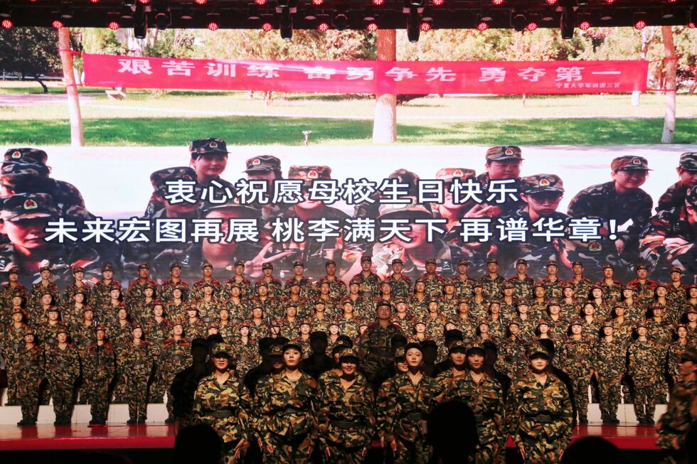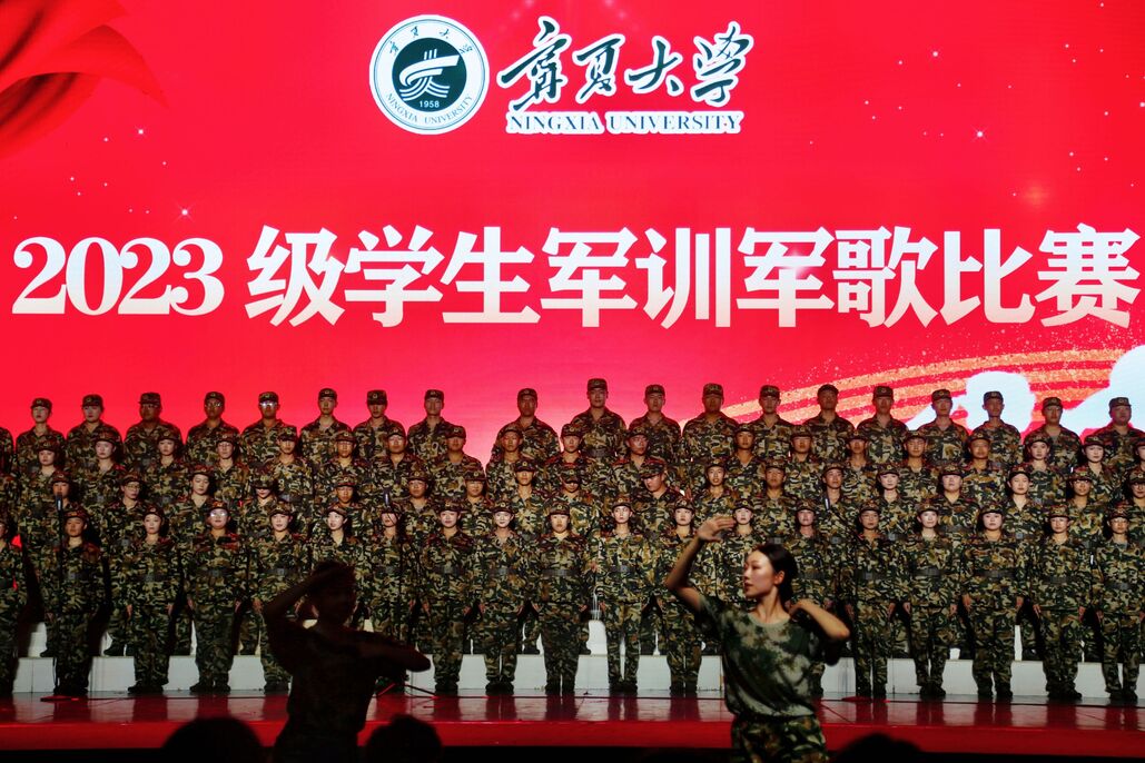 军歌嘹亮,尽展军训飒爽英姿;校歌铿锵,唱响校庆最美乐章。红色经典歌曲、军歌《保卫黄河》《当那一天来临》《中国人民解放军进行曲》《接战旗》《中国军魂》《打靶归来》饱含着党领导下的人民军队保家卫国、坚韧不拔、视死如归的钢铁意志和赤子情怀;beat365唯一官方网站校歌《我们是年轻的大学生》展现了宁大学子歌赞校庆、团结向上、砥砺奋进的青春激情和奋斗姿态。七个营代表队在比赛中站姿挺拔、精神饱满、动作齐整,用气势磅礴、响彻云霄的歌声赢得了现场师生阵阵的热烈掌声。