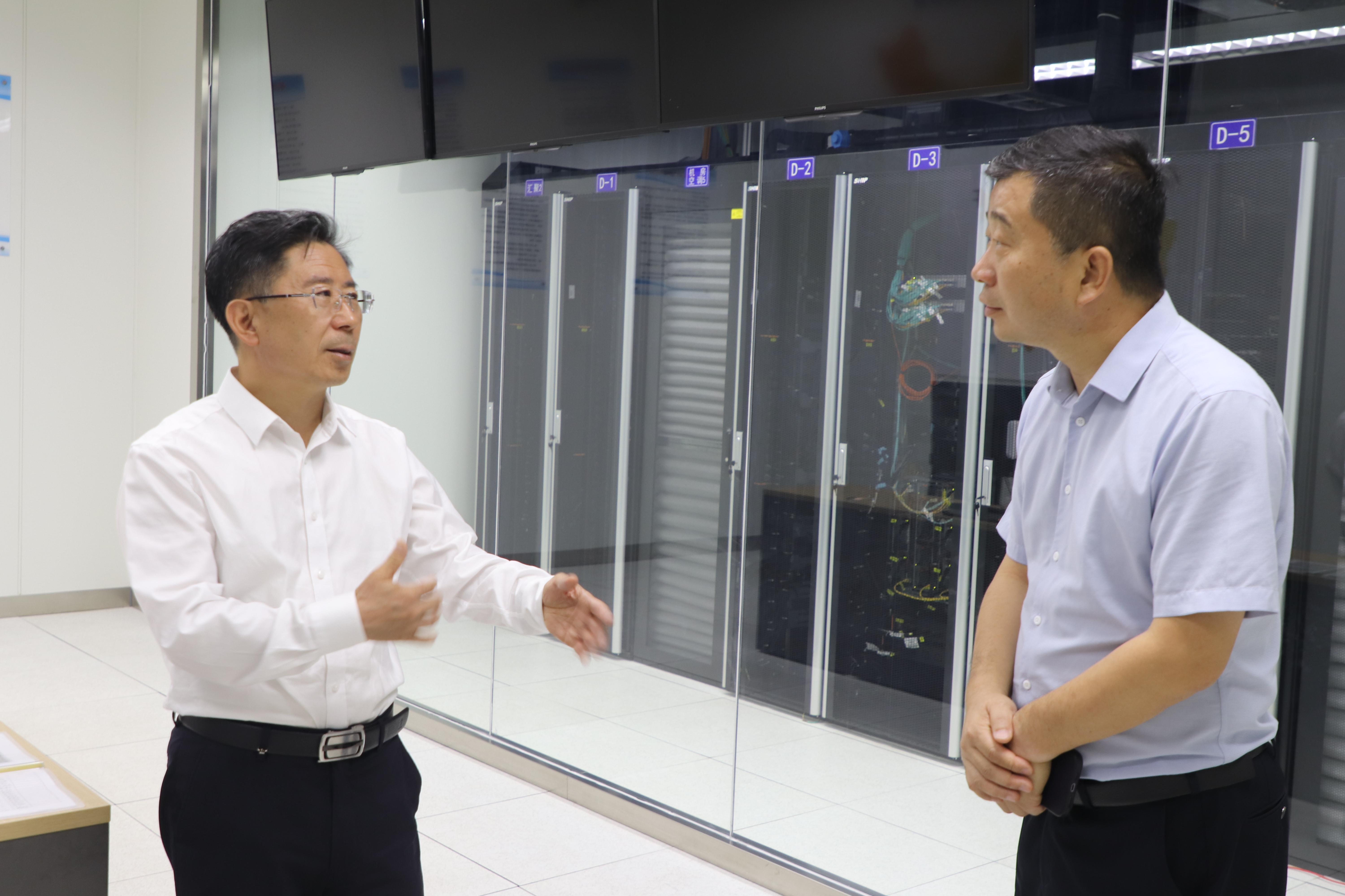 在网络与信息管理中心,李星一行实地查看了数据中心机房,认真听取了校园网络运维及网络安全情况的汇报。