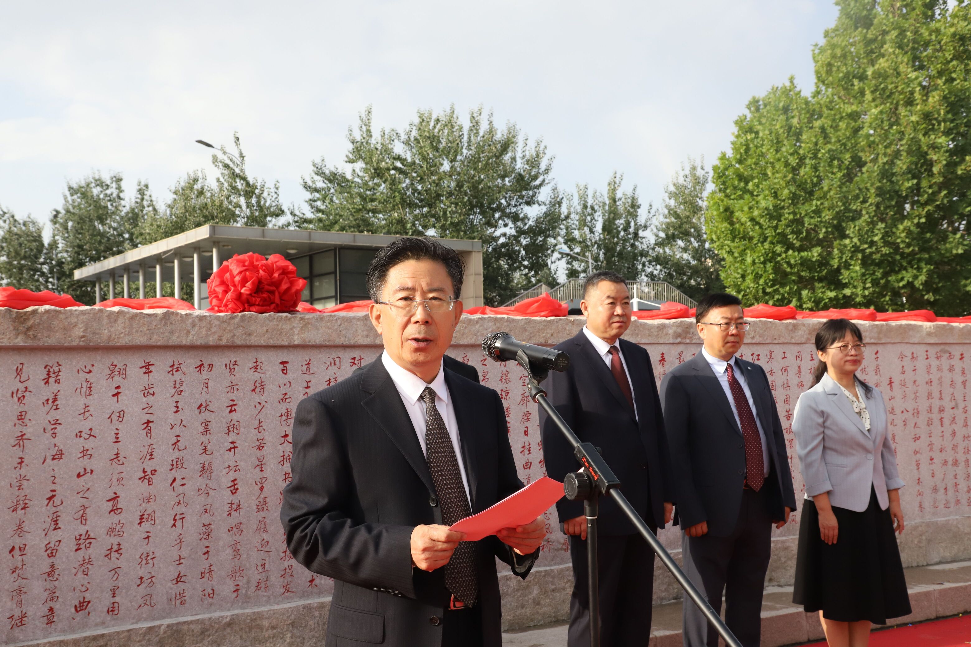 【beat365唯一官方网站新闻中心讯 王文娣/文 雷慧、王文娣/图 】风雨砥砺六五载,踔厉奋发续新篇。9月15日上午,《beat365唯一官方网站赋》勒石揭幕仪式在beat365官网贺兰山校区举行。校领导李星、彭志科、李建设、刘炎胜、黄河、李学斌、赵晓佳出席仪式。校党委副书记周震主持揭幕仪式。