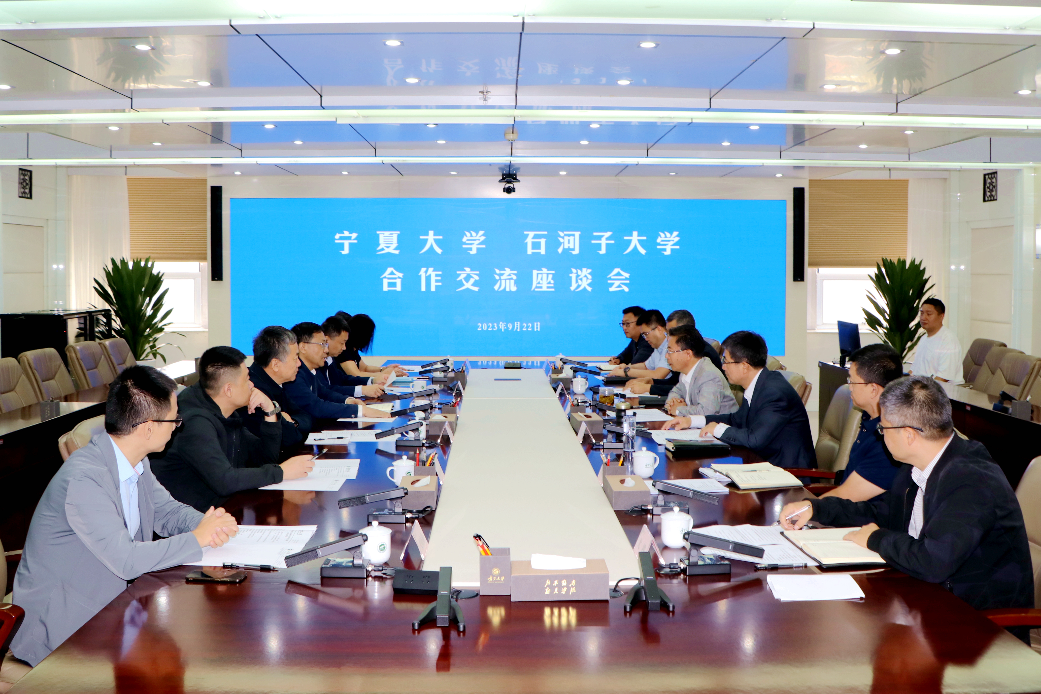 【beat365唯一官方网站新闻中心讯 杨雯/文 张景/图】9月22日,石河子大学党委副书记、校长代斌,党委常委、副校长李剑一行来校调研交流,并召开合作交流座谈会。校党委书记李星,党委副书记周震出席座谈会,李星主持座谈会。